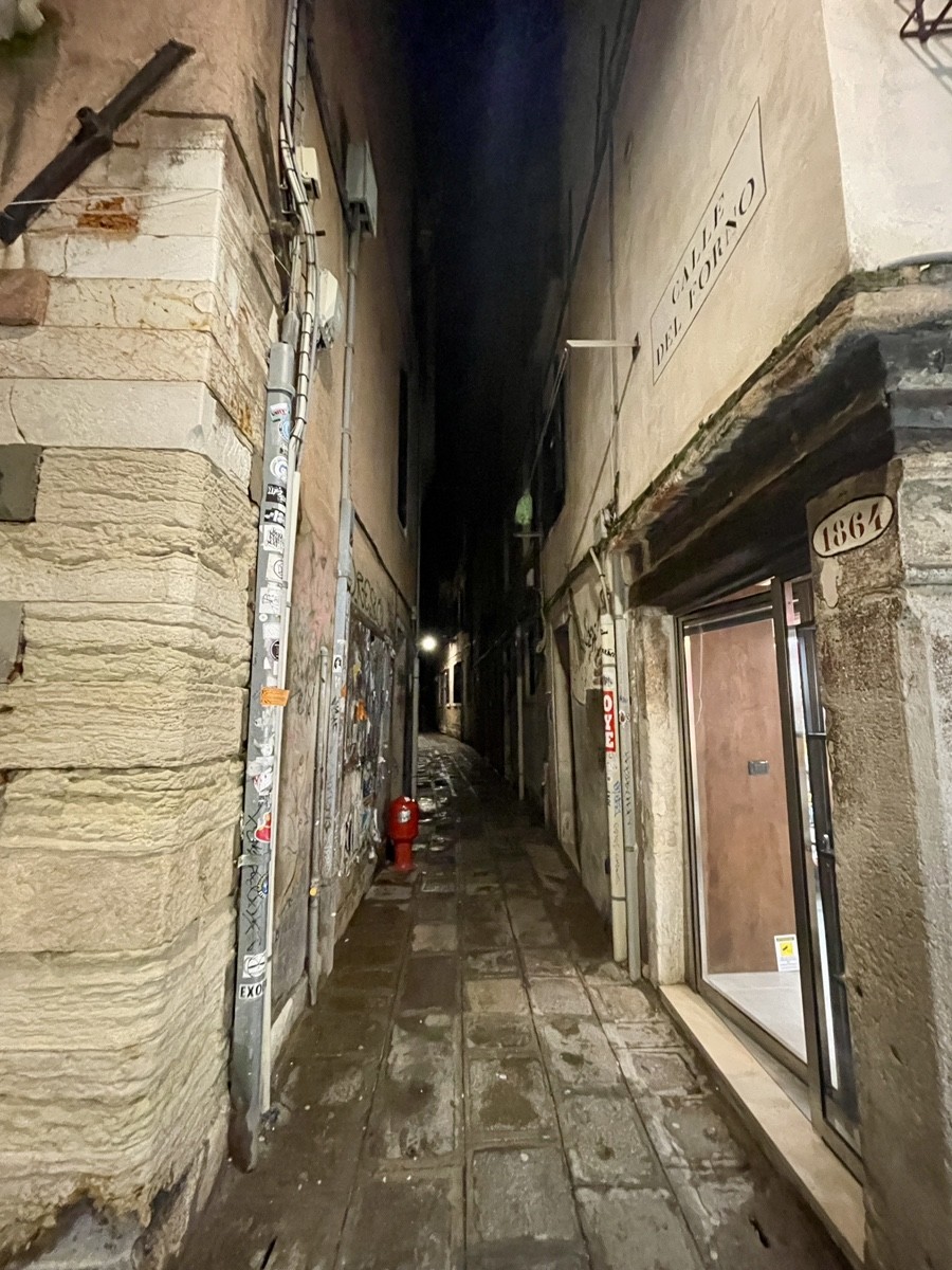 Путь ведет нас к площади Сан-Марко, которая в сезон фестиваля превращается в мистический театр. Но мы уходим от толпы вглубь, к району Сан-Лука. Здесь, у театра Гольдони и здания H&M (Palazzo Nervi-Scattolin), мы ловим тот самый контраст, который так ценил Гёте: ренессансная резьба акантом на фасадах встречается с модернизмом XX века. Мы идем по следам «немецкого купца Мёллера» (инкогнито великого поэта) через Калле дель Лово — «Волчью улицу», где в створе домов вдруг вспыхивает шпиль колокольни.