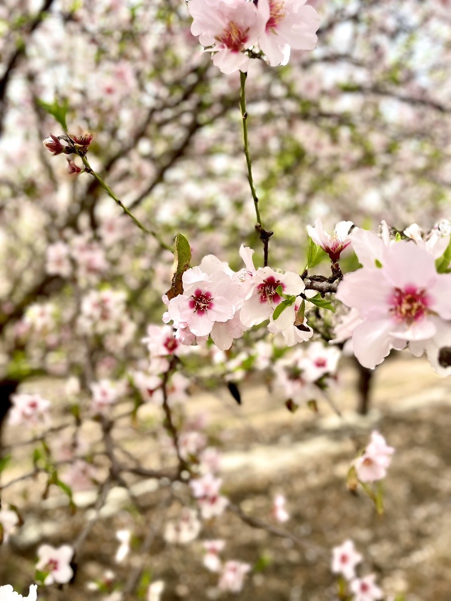 The intensity of these colours is influenced by the season; a sharp transition from a cold winter to spring can heighten the concentration of pink. For those wandering the former No-Man's Land, the Wild Almond (Prunus dulcis) stands out with vivid crimson or deep magenta blossoms, far more intense than its cultivated "pale" relatives. To capture the most vibrant pinks, photographers must arrive in late January before the orchards transition to their mature, white state.