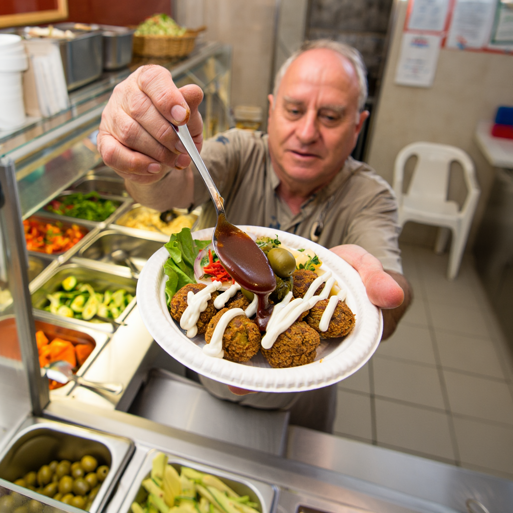 הפלאפל הוותיק שנקרא על שם בני הזוג המבוגרים שניהלו אותו נמצא בידי הנהלה חדשה של עפיף משנות ה 80- . כל מי שנכנס בשעריו, מקבל כדור פלאפל טבול בטחינה. בניגוד לפלאפל מישל, הפלאפל כאן הוא עז טעמים וכהה בלורית. הוואדי 18 04-8514949
