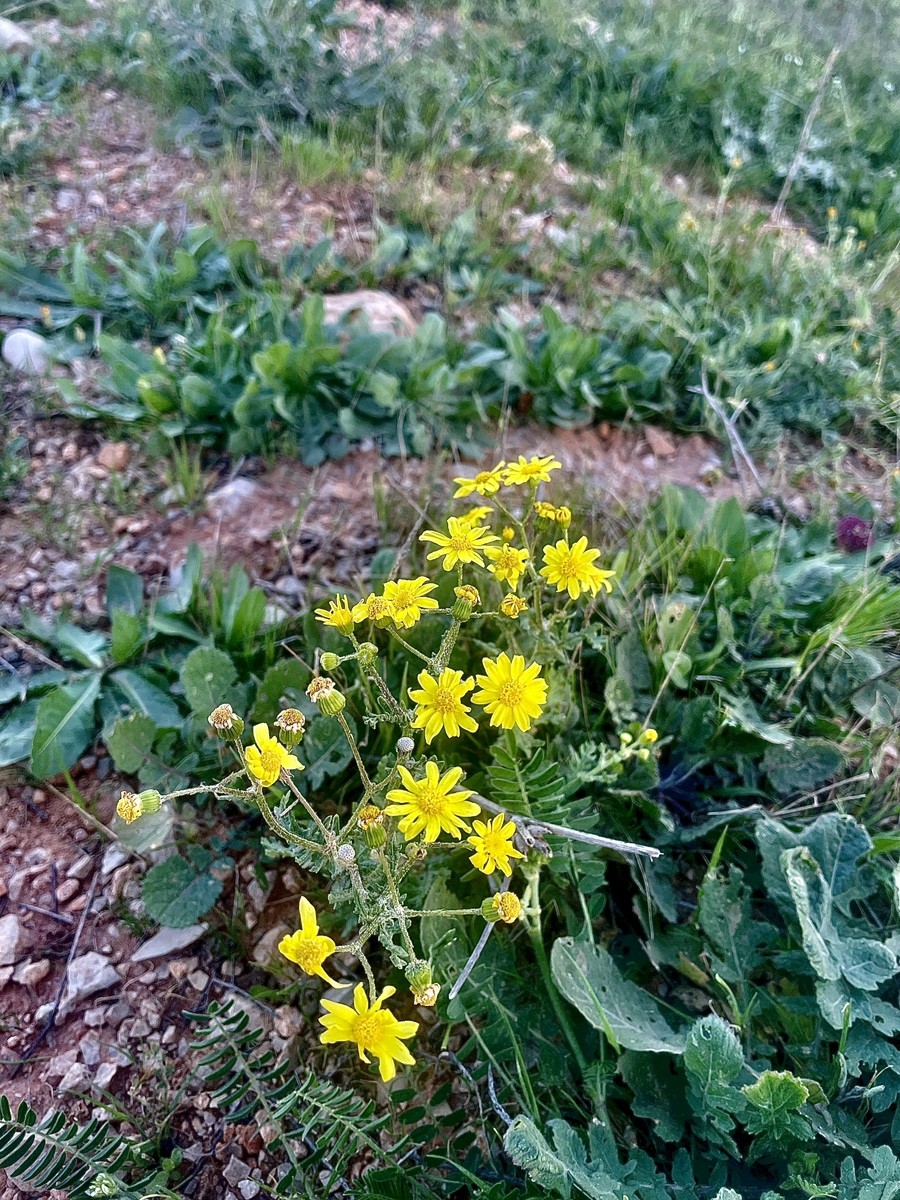 Крестовник весенний (Senecio vernalis). Это одно из самых массовых и ярких растений, которое окрашивает холмы Израиля в золотисто-желтый цвет именно в феврале и марте. Название Senecio происходит от латинского слова senex («старик»). Это связано с тем, что после цветения на месте желтых корзинок появляются пушистые белые шарики семян (как у одуванчика), напоминающие седую голову старца. Несмотря на красивый вид, крестовник содержит алкалоиды, которые защищают его от поедания животными. Для домашнего скота он может быть опасен, поэтому коровы и овцы обычно обходят его стороной, что позволяет ему разрастаться целыми полями.