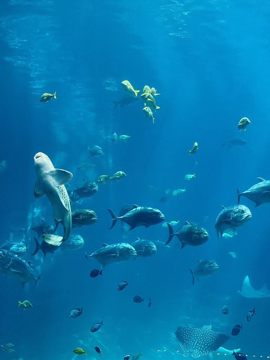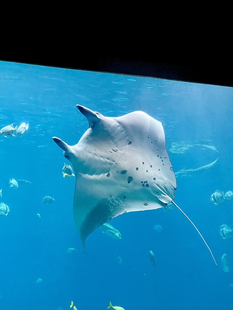 Transporting the tank’s star residents — the whale sharks — was a global operation. They were flown from Taiwan in custom-built seawater containers, each monitored around the clock for oxygen, temperature, and water quality, with teams of veterinarians and marine biologists on board. Manta rays, far more sensitive to space and stress, were also carried in specially designed transport tanks.