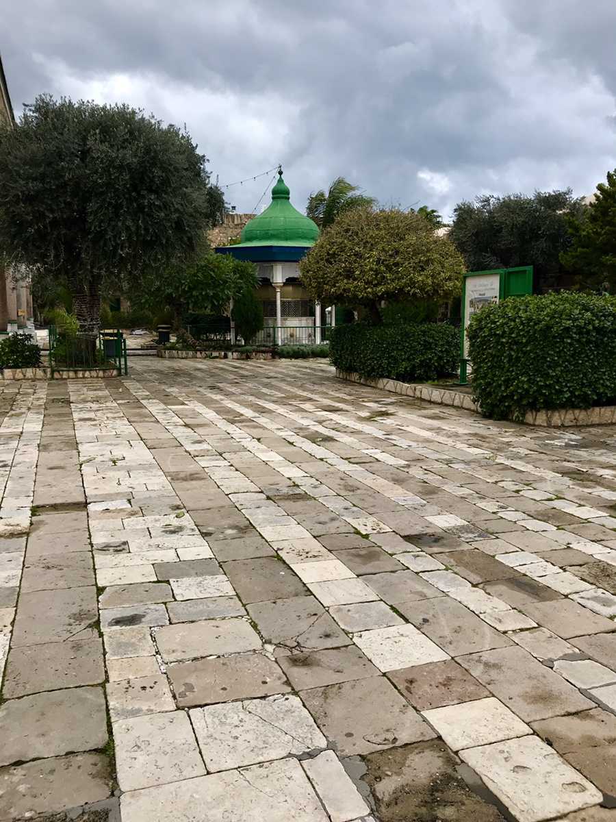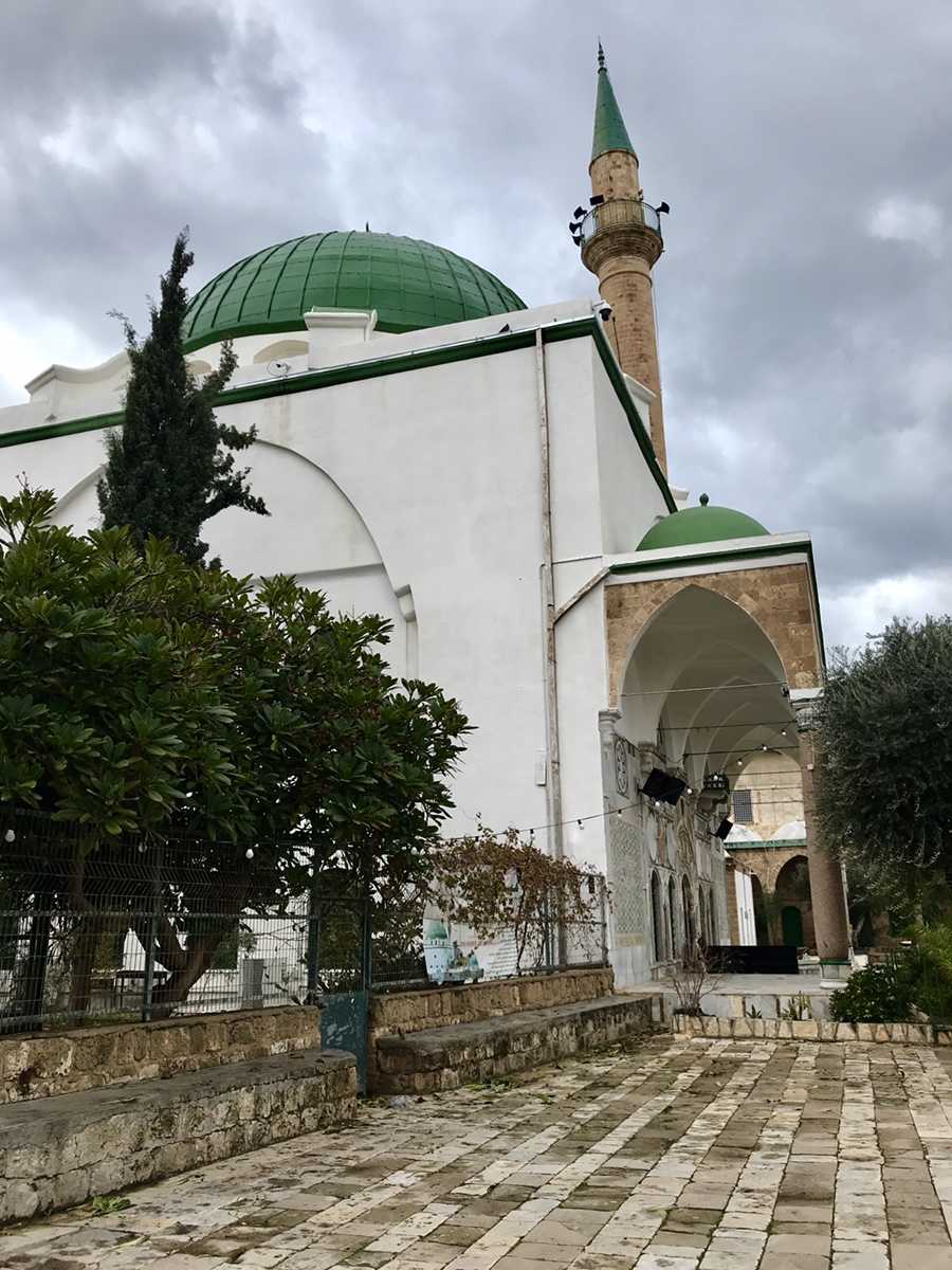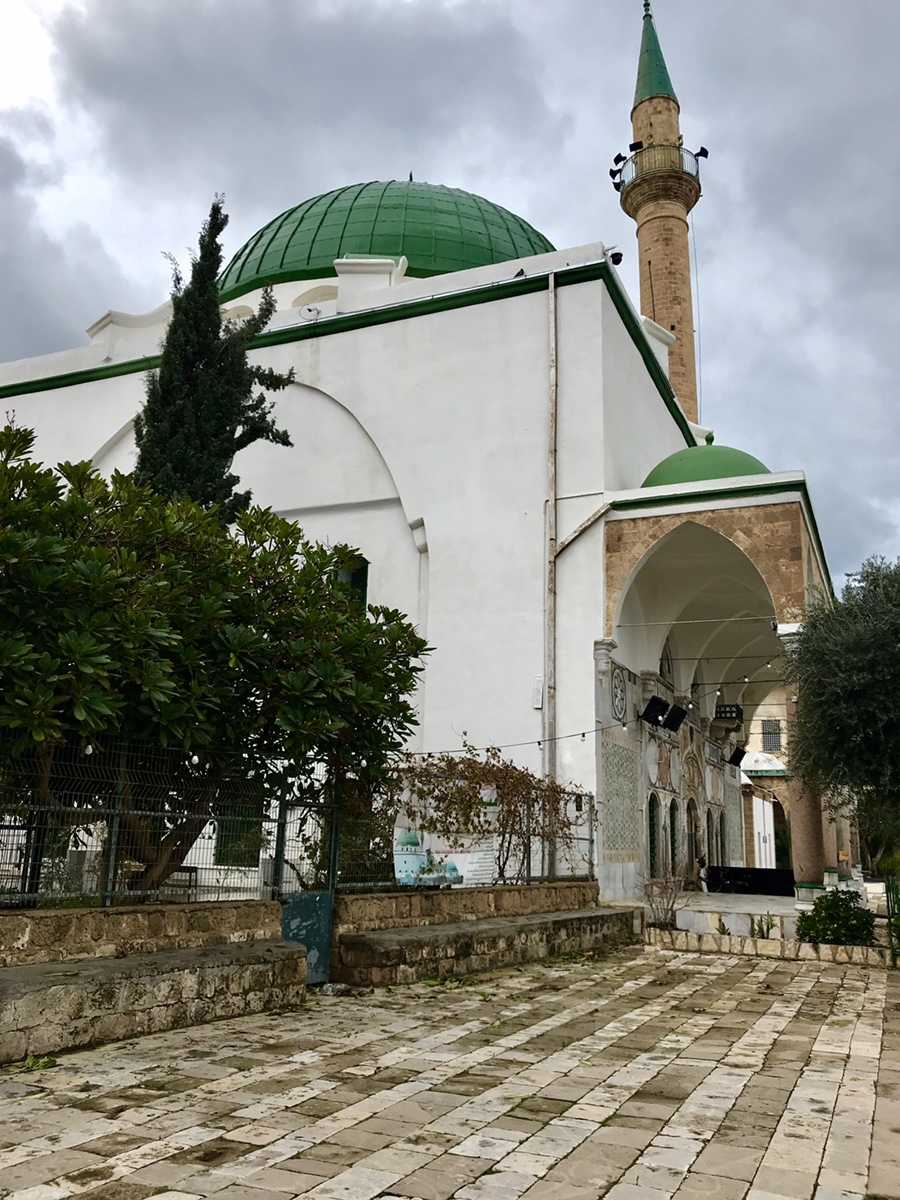 מול הכניסה למסגד יש סיביות מסורתית לביטולים פולחניים. ומימין לכניסה נמצא קברם של אחמד אל ג'זאר ובנו סולימאן. Translated with Google Translate
