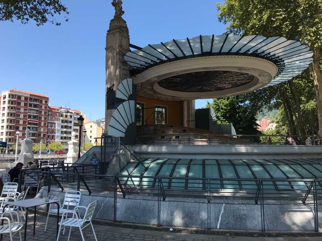 The Arenal bandstand, altered over time but faithful to its purpose, still hosts concerts by the Bilbao Municipal Band and the traditional txistularis — Basque flute players accompanied by drums.
