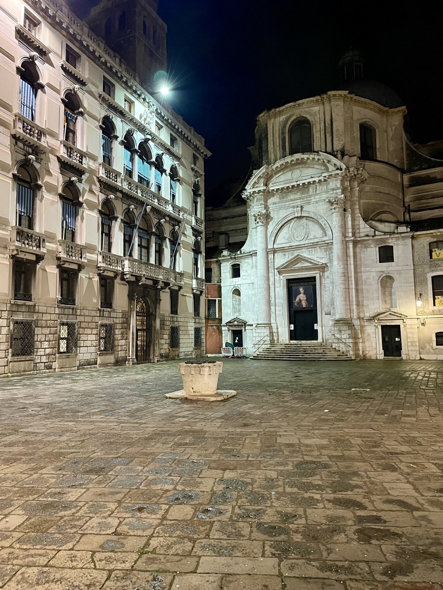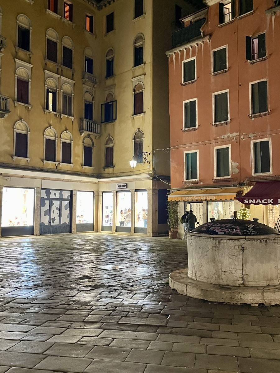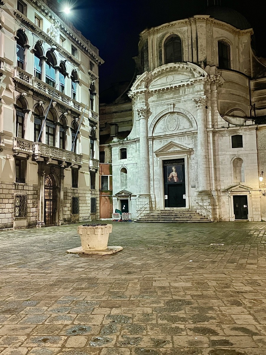 Путь ведет нас к площади Сан-Марко, которая в сезон фестиваля превращается в мистический театр. Но мы уходим от толпы вглубь, к району Сан-Лука. Здесь, у театра Гольдони и здания H&M (Palazzo Nervi-Scattolin), мы ловим тот самый контраст, который так ценил Гёте: ренессансная резьба акантом на фасадах встречается с модернизмом XX века. Мы идем по следам «немецкого купца Мёллера» (инкогнито великого поэта) через Калле дель Лово — «Волчью улицу», где в створе домов вдруг вспыхивает шпиль колокольни.