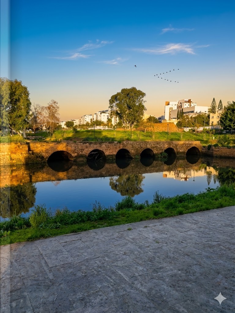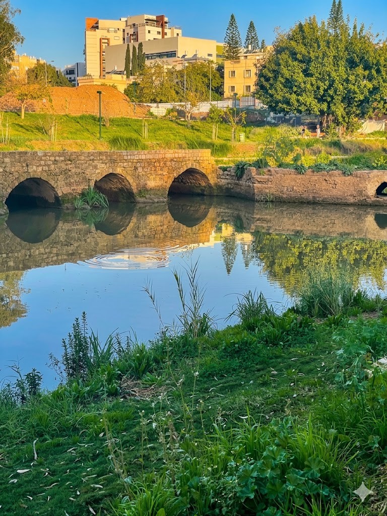 Короткий переезд — и мы оказываемся у самого красивого исторического объекта на реке, древнего моста «Десять мельниц». Его средневековые камни помнят рыцарей-крестоносцев и триумфальное шествие армии Наполеона, и именно здесь вы почувствуете, что Яркон всегда был не просто рекой, а мощным стратегическим ключом Эрец Исраэль . Отсюда наш путь лежит уже в само сердце Тель-Авива, в парк, который по праву считается его зелеными легкими. Место под названием «Семь станций» — это настоящий магнит для фотографов и любителей эстетики. Здесь река разливается широким зеркалом, в котором отражаются небо и ивы, создавая открыточные виды, ради которых люди пересекают весь город. Прогуливаясь мимо тихих заводей, где терпеливо замерли рыбаки, вы ощутите удивительный контраст между мощью былой индустрии и сегодняшним безмятежным покоем.