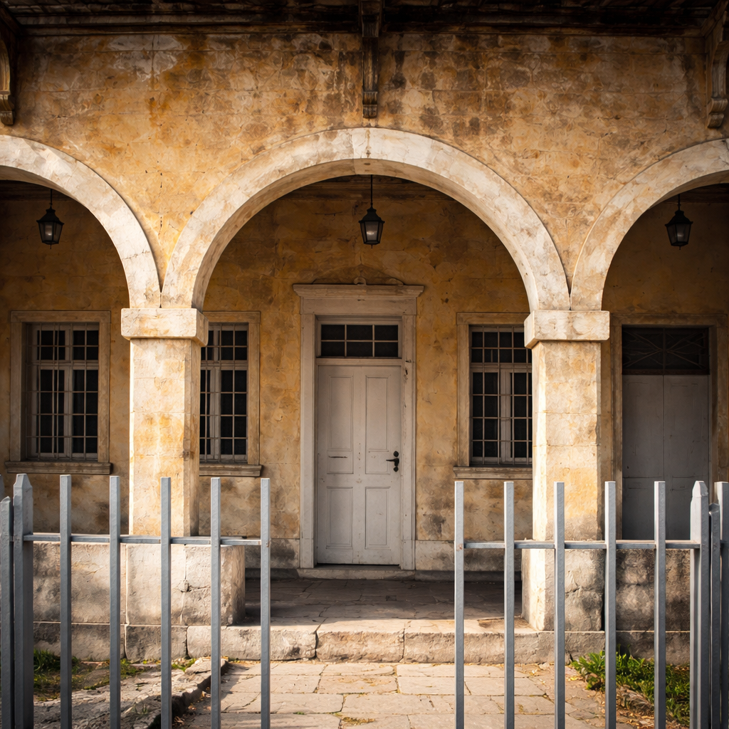 La casa fue construida en el período de mayor prosperidad de la colonia, pocos años antes del cambio de siglo. Tenía dos plantas residenciales, un sótano y un altillo, y su fachada se abría con arcos y amplias vitrinas donde se exhibían los productos. El frontón y la inscripción bíblica sobre la entrada son rasgos típicos de la arquitectura templaria. La frase “Eben Ezra”, junto con el año de construcción, remite a una imagen del Antiguo Testamento y subraya el carácter religioso de la comunidad. Enfrente del edificio hubo primero un hotel, luego una terminal de ómnibus y hoy vuelve a levantarse un hotel: la ciudad regresa, una vez más, a su lógica portuaria.