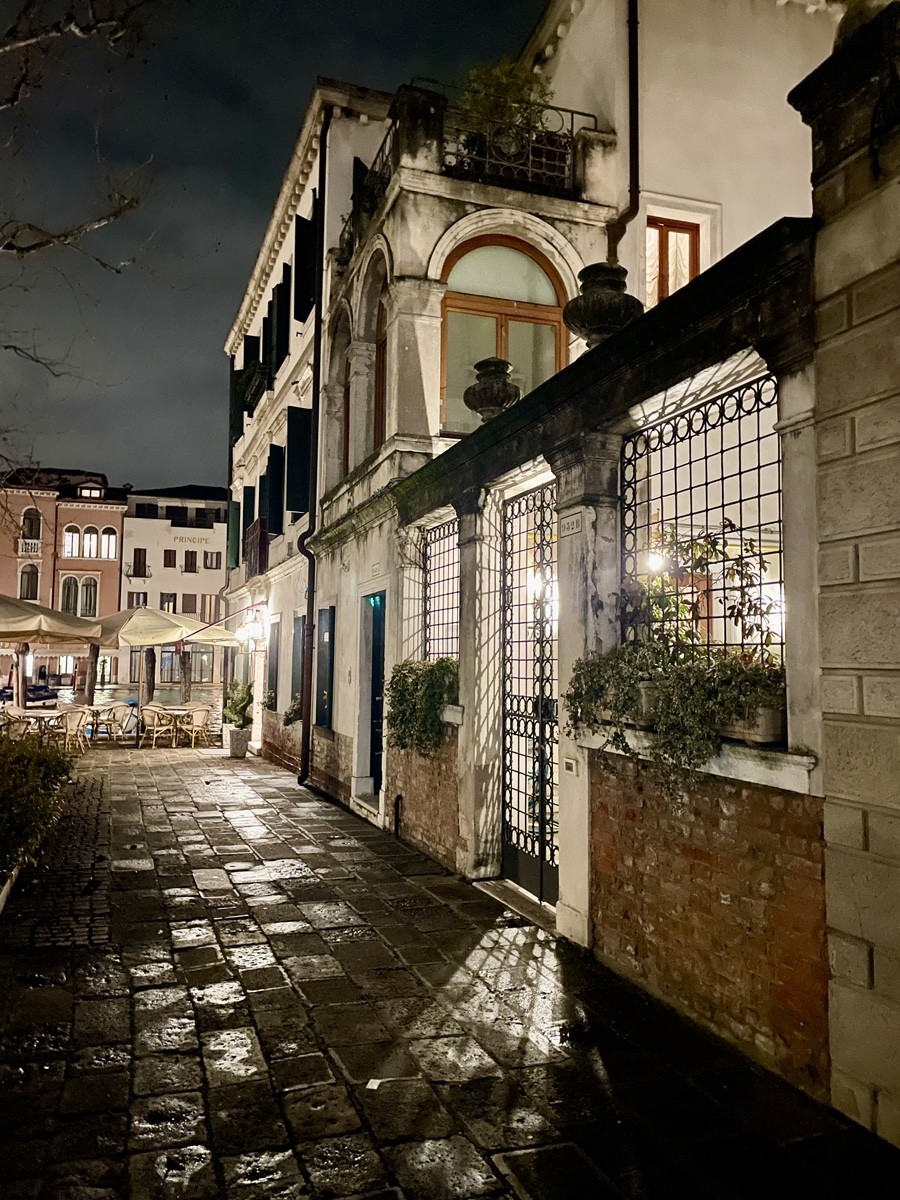 Путь ведет нас к площади Сан-Марко, которая в сезон фестиваля превращается в мистический театр. Но мы уходим от толпы вглубь, к району Сан-Лука. Здесь, у театра Гольдони и здания H&M (Palazzo Nervi-Scattolin), мы ловим тот самый контраст, который так ценил Гёте: ренессансная резьба акантом на фасадах встречается с модернизмом XX века. Мы идем по следам «немецкого купца Мёллера» (инкогнито великого поэта) через Калле дель Лово — «Волчью улицу», где в створе домов вдруг вспыхивает шпиль колокольни.