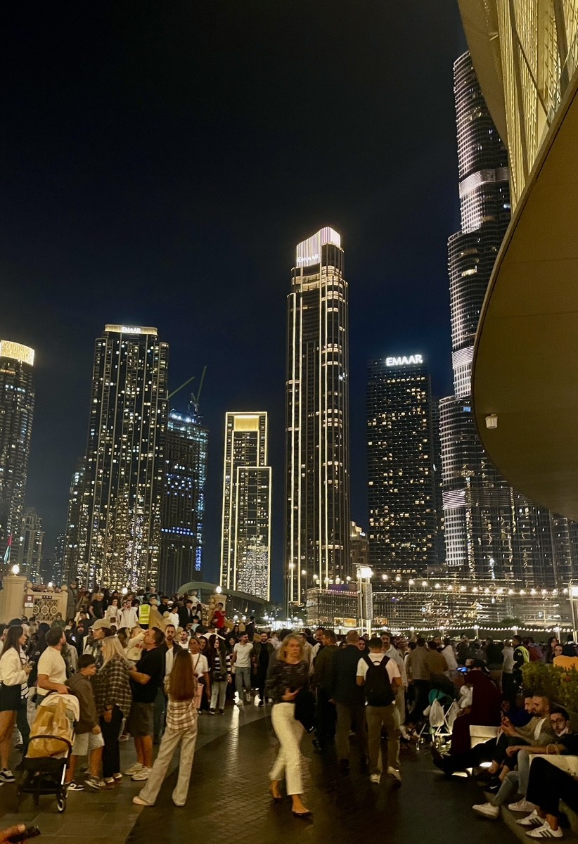 Здесь Дубай собирается плотнее всего. Толпа выходит к воде, люди замедляются, поднимают головы, кто-то останавливается, кто-то идёт дальше, но взгляд всё равно тянется вверх. Burj Khalifa не нужно искать — он сам выстраивает вокруг себя пространство и маршрут, даже если ты сюда не шёл.