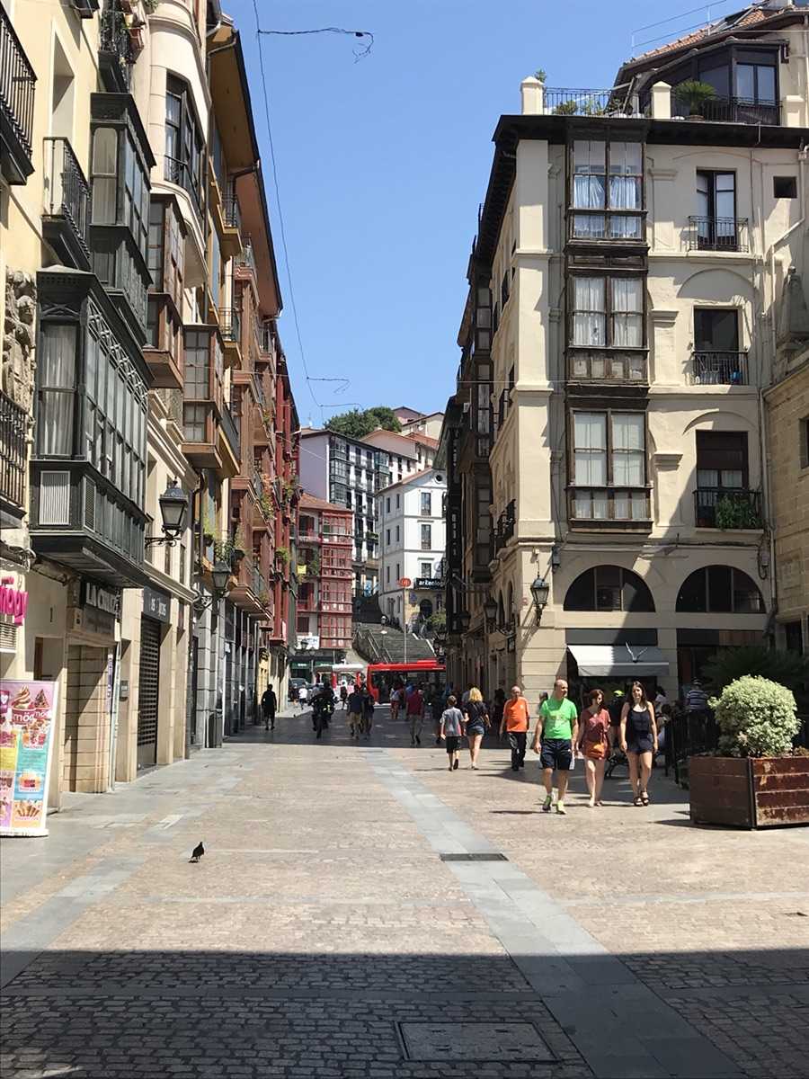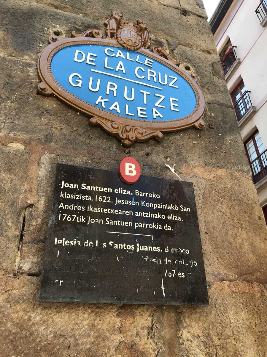 Walking through old Bilbao and turning onto Calle de la Cruz, you feel the city’s early heartbeat. This was one of the original seven streets — the narrow beginnings from which Bilbao grew. A stone cross once stood here, giving the street its name. For travelers it was a sign of protection; for the townspeople, a marker of faith and guardianship. The plaques on the walls still tell that story: how in the thirteenth century the city rose from seven cramped lanes, how wooden houses burned again and again, and how in the nineteenth century Bilbao rebuilt itself into the place we see today, with its squares like Plaza Nueva and San Francisco.