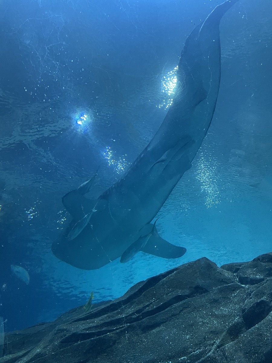 And then, the star of the aquarium: the whale shark. Stretching 12 to 14 meters long, it is the largest fish on Earth. Despite its size, it feeds only on plankton and tiny fish. To house these giants, engineers built a tank holding 24 million liters of water — the only place in the United States where whale sharks can be seen.