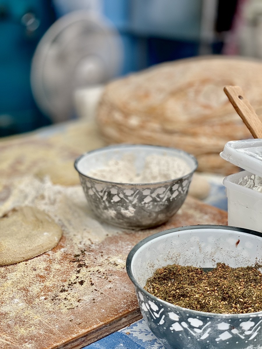 Тесто делят вручную, раскатывают в тонкие лепёшки, посыпают за’атаром, смазывают оливковым маслом и пекут на горячем железе или камне. Хлеб выходит лёгкий, с пузырями и румяными пятнами, а пар, поднимающийся над ним, смешивается с ароматом тмина и семолины. Люди собираются, разговаривают, делятся новостями — пятничный хлеб становится центром улицы, как сама молитва в центре дня. Это мгновение, когда духовное и земное соединяются в запахе свежего теста и оливкового масла.