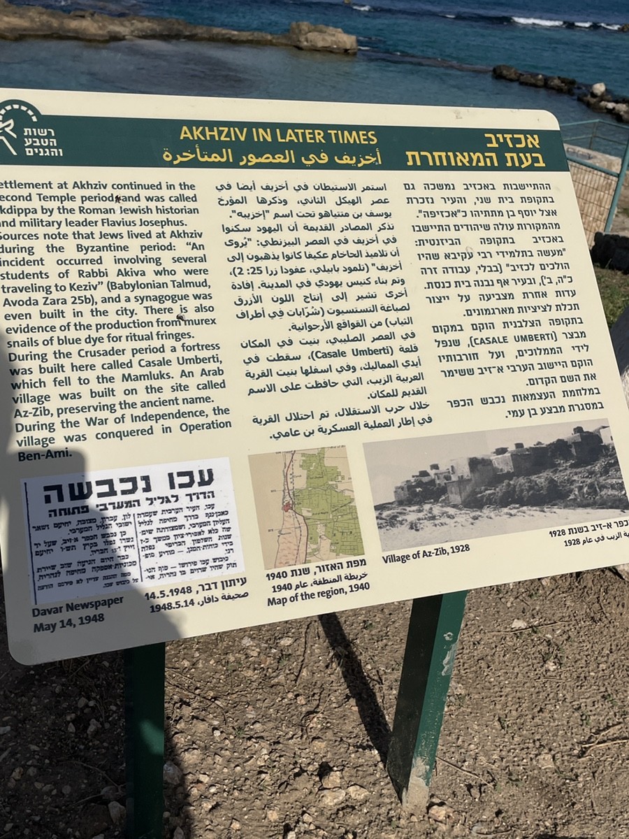 Когда наступила эпоха крестоносцев — тех, кто шёл с крестом и мечом на Восток, здесь построили крепость Casale Umberti, укреплённую усадьбу феодала по имени Умберт. Позже пришли мамлюки, те, кто когда-то был рабами и стали правителями, и разрушили замок до основания. На его руинах, спустя годы, выросла деревня Аз-Зиб, основанная арабами — земледельцами и рыбаками, жившими у моря до 1948 года.