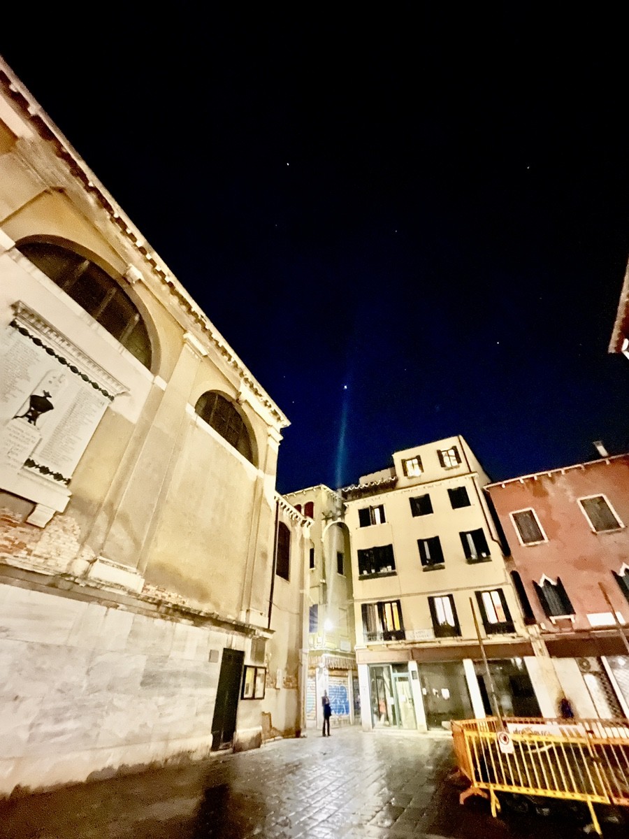 Путь ведет нас к площади Сан-Марко, которая в сезон фестиваля превращается в мистический театр. Но мы уходим от толпы вглубь, к району Сан-Лука. Здесь, у театра Гольдони и здания H&M (Palazzo Nervi-Scattolin), мы ловим тот самый контраст, который так ценил Гёте: ренессансная резьба акантом на фасадах встречается с модернизмом XX века. Мы идем по следам «немецкого купца Мёллера» (инкогнито великого поэта) через Калле дель Лово — «Волчью улицу», где в створе домов вдруг вспыхивает шпиль колокольни.