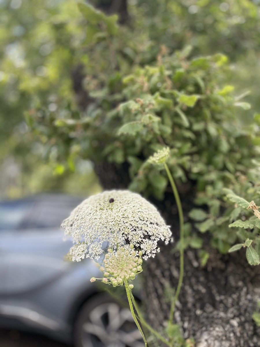 Апрель в заповеднике Алоней-Ицхак начинается с тишины и удобства: вы оставляете машину на стоянке одноименной школы-интерната и сразу попадаете в мир, где история образования переплетается с древней природой. В это время года под сенью могучих дубов расстилается белоснежное кружево — это цветет **дикая морковь** (*Daucus carota*). Ее ажурные зонтики кажутся воплощением чистоты, но в самом центре каждого соцветия таится загадка — крошечный, почти черный цветок. Эта «темная точка» — гениальная природная обманка. Имитируя сидящее насекомое, она завлекает пролетающих мимо опылителей, приглашая их на «застолье», которого на самом деле еще не существует. Здесь, в тени таворских дубов, дикая морковь живет в своеобразном симбиозе с исполинами: деревья обеспечивают необходимый микроклимат и защиту, а зонтичная красота заполняет нижний ярус леса, создавая уникальную экосистему. Этот сюжет — сочетание честного союза (симбиоза), хитроумной иллюзии (обманки) и хрупкого изящества — станет лейтмотивом нашего дальнейшего повествования о заповеднике. Но обо всем этом — понемногу дальше.