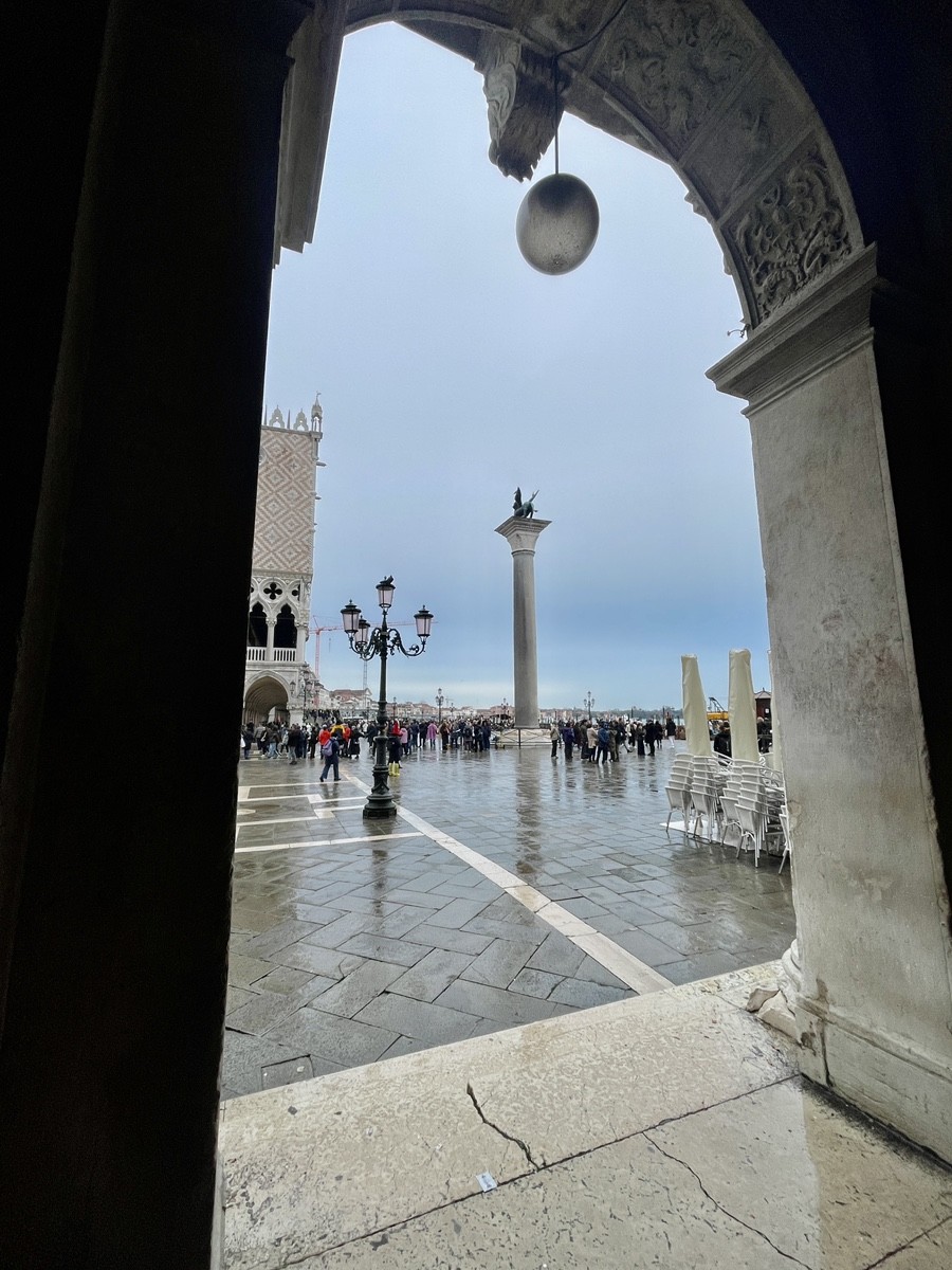 Интересно, что головы преступников после казней выставлялись именно у подножия колонны со Львом. Лев смотрел на них, как бы подтверждая, что закон исполнен. Это соседство величайшей библиотеки мира (света знаний) и места публичных наказаний (тьмы закона) — и есть настоящая, невыдуманная Венеция. Заголовок: «» Заметил ли ты, что Лев на колонне развернут задом к лагуне и морским воротам? Знаешь, какой политический смысл вложили в это венецианцы?