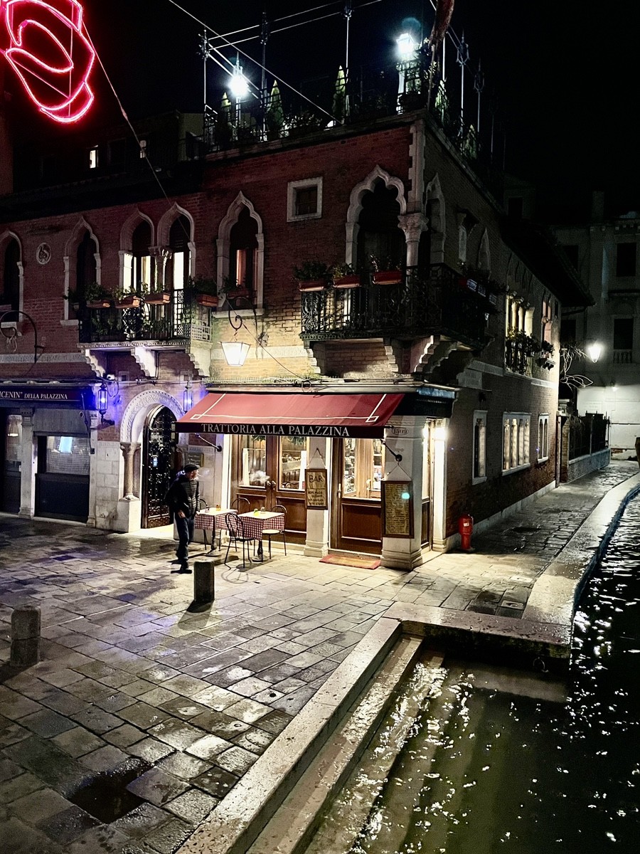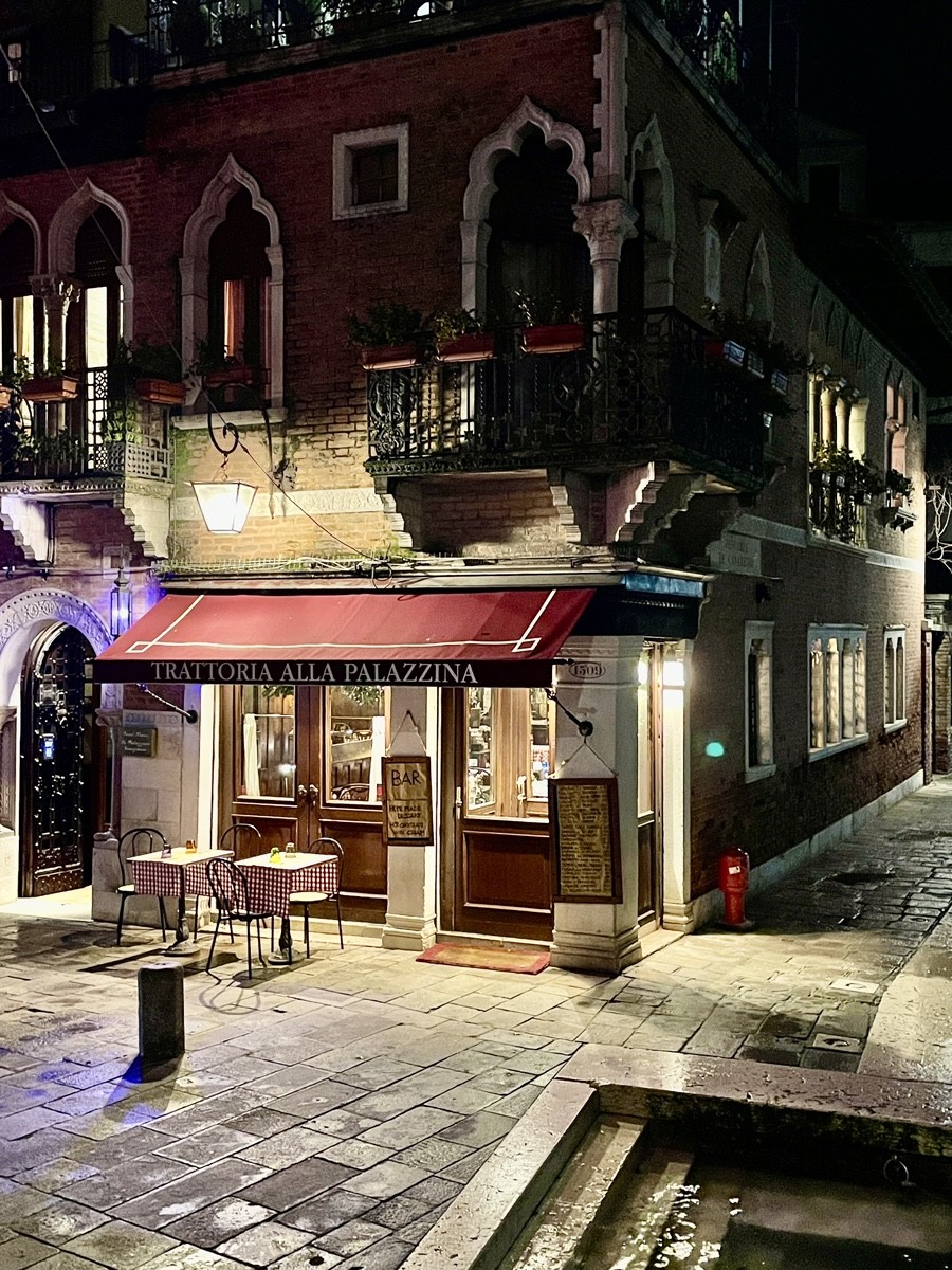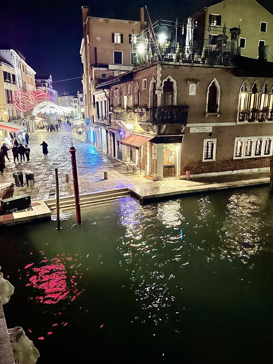Мы движемся вдоль Гранд-канала к рыбному рынку Риальто (Pescaria). Зимой, в свете фонарей, его неоготические арки кажутся декорациями к таинственной пьесе. Это чрево Венеции, где веками шумят торговцы и где «язык камня» встречается с повседневной суетой. Пройдя через легендарный мост Риальто, мы попадаем в самое сердце коммерции, где банковские палаццо соседствуют с крошечными лавками.