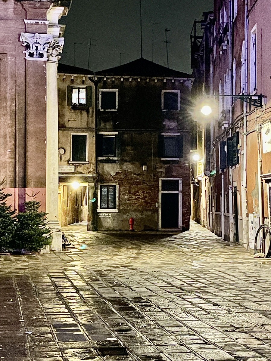Путь ведет нас к площади Сан-Марко, которая в сезон фестиваля превращается в мистический театр. Но мы уходим от толпы вглубь, к району Сан-Лука. Здесь, у театра Гольдони и здания H&M (Palazzo Nervi-Scattolin), мы ловим тот самый контраст, который так ценил Гёте: ренессансная резьба акантом на фасадах встречается с модернизмом XX века. Мы идем по следам «немецкого купца Мёллера» (инкогнито великого поэта) через Калле дель Лово — «Волчью улицу», где в створе домов вдруг вспыхивает шпиль колокольни.