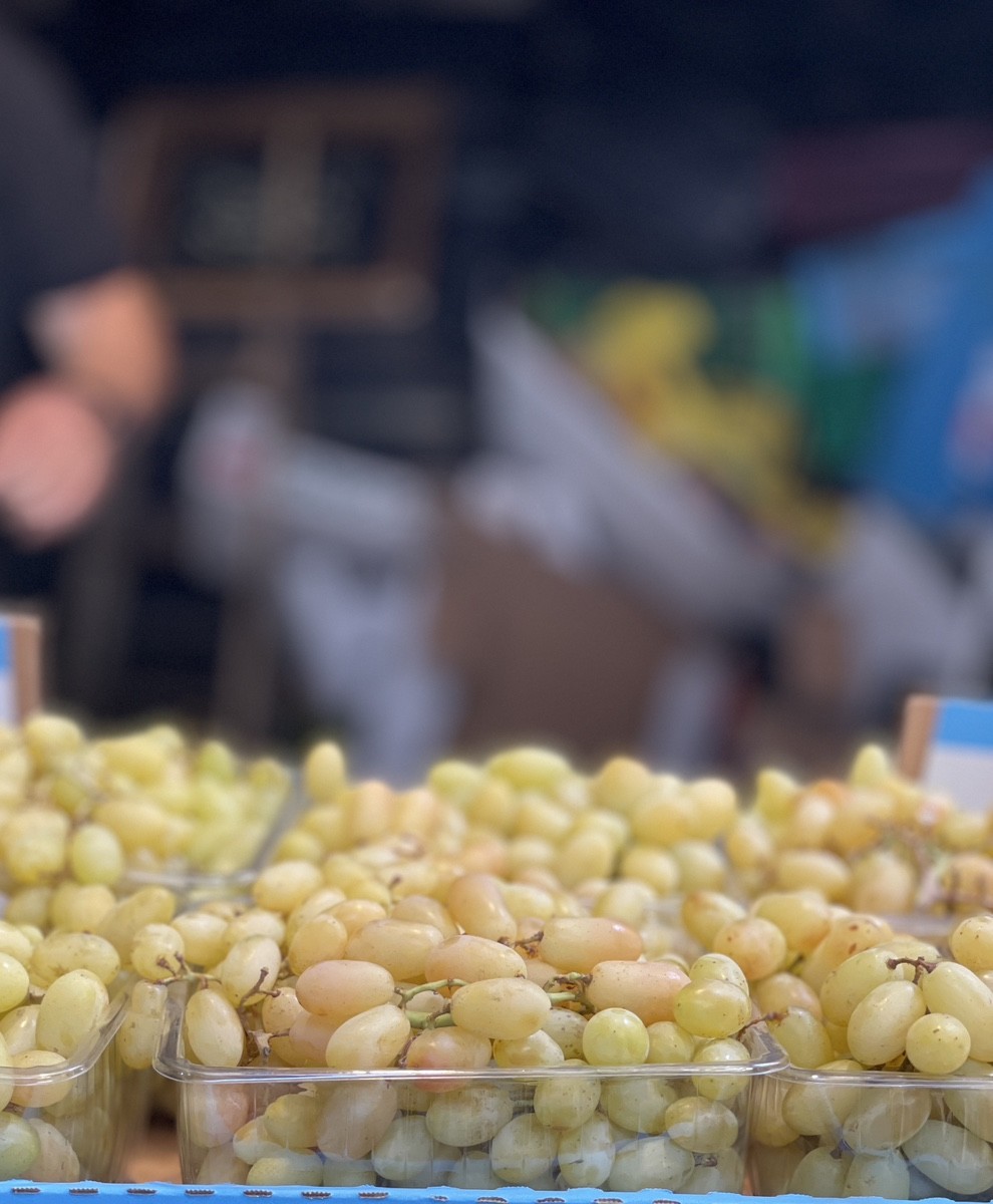 Виноград — особая гордость. Среди ящиков можно найти старые сорта, такие как халвани — с крупной, мясистой ягодой, напоминающей по форме «коровий сосок». Его название происходит от слова «халва», ведь ягоды такие же сладкие, как восточная сладость. Другой сорт — скоти, балади, то есть исконно местный. Зелёный, гладкий и сочный, он растёт в Галилее и Хевроне, где его называют эль-Халили. Из него делают изюм, соки и белое монастырское вино в Кармизане, к югу от Иерусалима. Эти сорта существовали задолго до новых европейских лоз и были важной частью крестоносных виноградников, когда из Акко шло вино на запад.