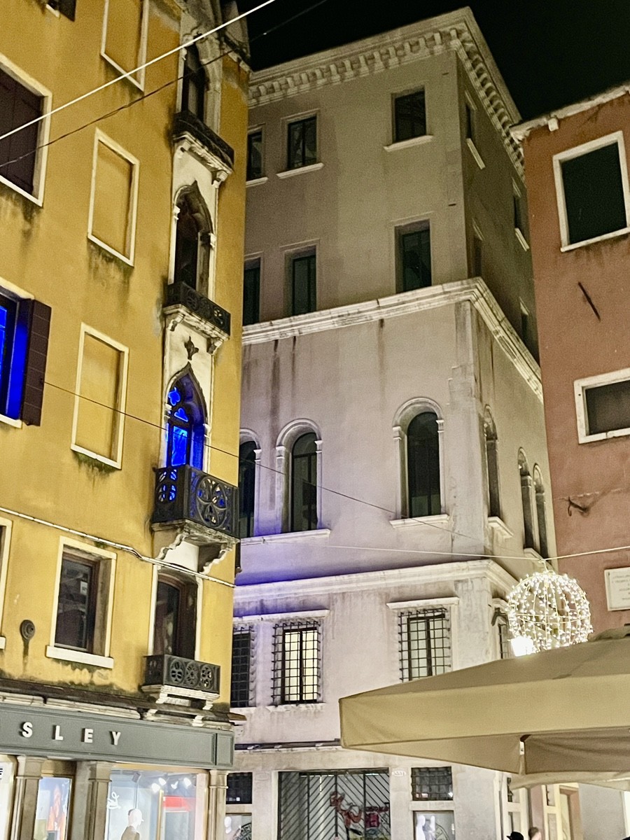 Путь ведет нас к площади Сан-Марко, которая в сезон фестиваля превращается в мистический театр. Но мы уходим от толпы вглубь, к району Сан-Лука. Здесь, у театра Гольдони и здания H&M (Palazzo Nervi-Scattolin), мы ловим тот самый контраст, который так ценил Гёте: ренессансная резьба акантом на фасадах встречается с модернизмом XX века. Мы идем по следам «немецкого купца Мёллера» (инкогнито великого поэта) через Калле дель Лово — «Волчью улицу», где в створе домов вдруг вспыхивает шпиль колокольни.