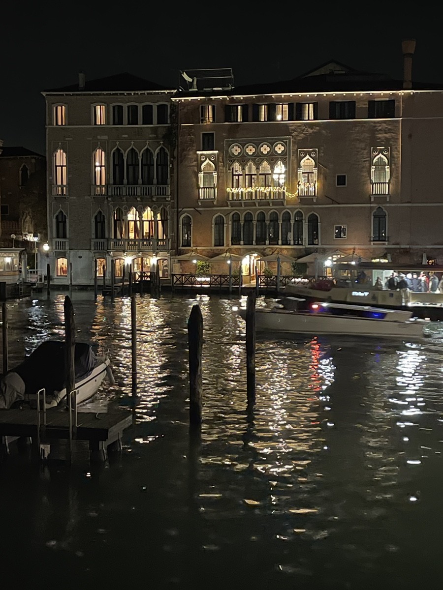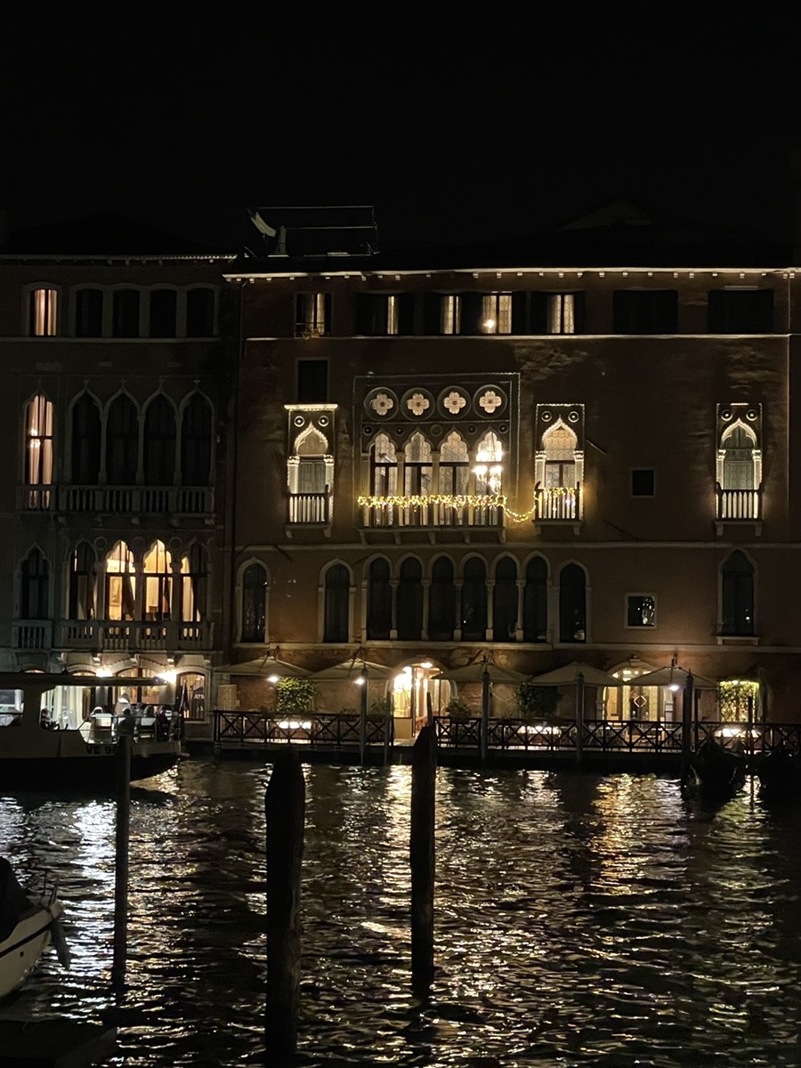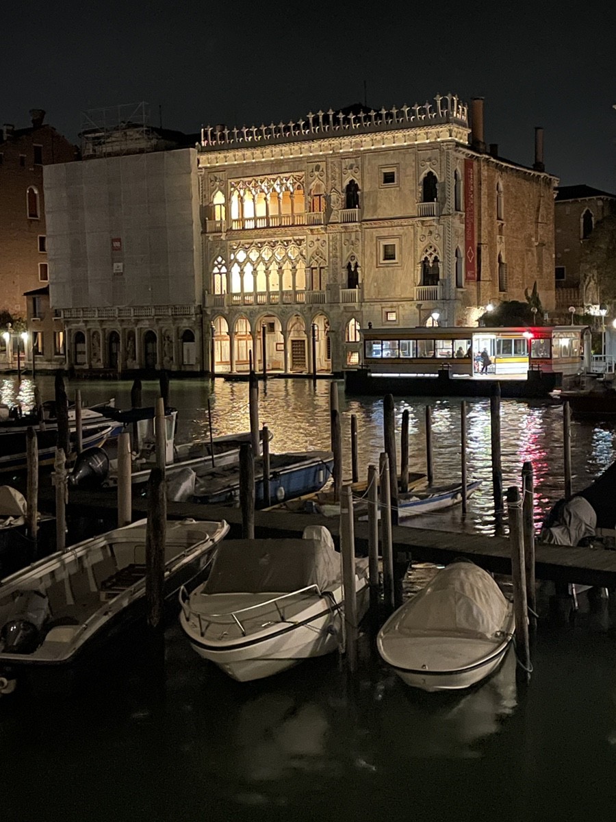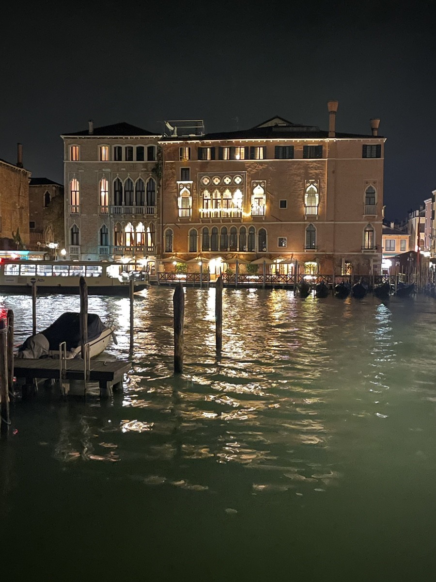Напротив рыбного рынка Риальто (Mercato di Rialto) расположены два выдающихся памятника венецианской готики. В центре вашего внимания на фото и видео — знаменитый «Золотой дом», но его сосед не менее интересен. Ca' d'Oro (Палаццо Санта-София) Этот дворец — настоящий символ венецианской готики. Его фасад (тот, что с ажурными лоджиями на фото) считается самым изысканным на Гранд-канале. Название: «Ка-д’Оро» буквально означает «Золотой дом». В XV веке многие детали его фасада были покрыты сусальным золотом, ультрамарином и киноварью. Построен между 1428 и 1430 годами. Обратите внимание на асимметрию фасада — это характерная черта венецианских дворцов того времени. Левая часть с ажурными арками предназначалась для парадных залов, а правая осталась более «глухой». Дворец едва не был разрушен в XIX веке балериной Марией Тальони, которая затеяла там «варварский» ремонт. Спасло здание вмешательство барона Джорджо Франкетти, который выкупил его, восстановил по старым чертежам и подарил государству вместе со своей коллекцией живописи (теперь там музей — Галерея Франкетти). Palazzo Sagredo (Палаццо Сагредо) Здание, которое стоит вплотную к Ка-д’Оро (на видео оно подсвечено теплым светом), — это массивный дворец XIV века. Сначала он принадлежал семье Морозини, но в XVII веке перешел к влиятельному роду Сагредо. Именно здесь разворачивается действие знаменитого диалога Галилео Галилея «Диалог о двух главнейших системах мира». Один из персонажей книги, Джованни Франческо Сагредо, был реальным другом Галилея и владельцем этого дома. Сейчас в здании располагается роскошный отель. Внутри сохранились потрясающие фрески и лепнина, а также монументальная лестница. Почему они здесь? Расположение напротив рыбного рынка было стратегическим: это самый центр коммерческой жизни Венеции. Владельцы таких дворцов могли буквально из окон наблюдать за разгрузкой товаров и движением на главной торговой артерии города.