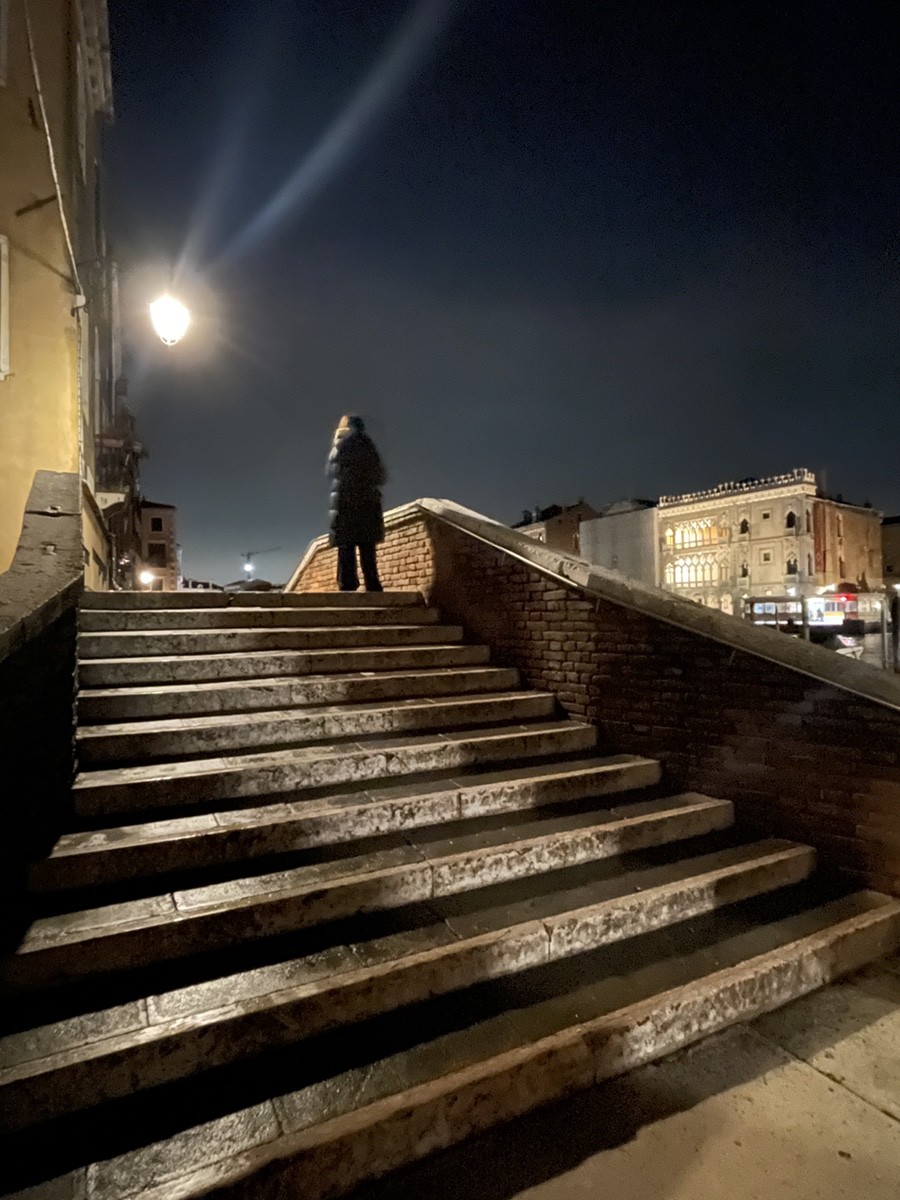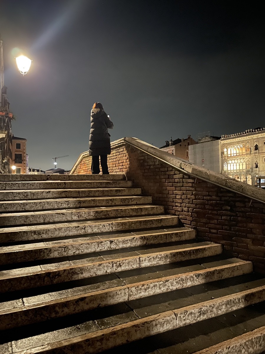 Мы движемся вдоль Гранд-канала к рыбному рынку Риальто (Pescaria). Зимой, в свете фонарей, его неоготические арки кажутся декорациями к таинственной пьесе. Это чрево Венеции, где веками шумят торговцы и где «язык камня» встречается с повседневной суетой. Пройдя через легендарный мост Риальто, мы попадаем в самое сердце коммерции, где банковские палаццо соседствуют с крошечными лавками.