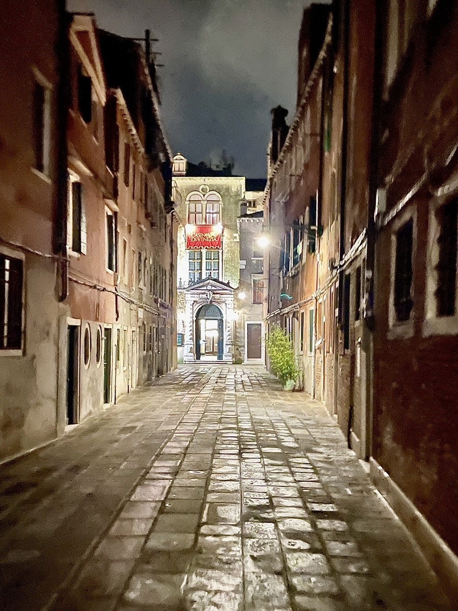 Путь ведет нас к площади Сан-Марко, которая в сезон фестиваля превращается в мистический театр. Но мы уходим от толпы вглубь, к району Сан-Лука. Здесь, у театра Гольдони и здания H&M (Palazzo Nervi-Scattolin), мы ловим тот самый контраст, который так ценил Гёте: ренессансная резьба акантом на фасадах встречается с модернизмом XX века. Мы идем по следам «немецкого купца Мёллера» (инкогнито великого поэта) через Калле дель Лово — «Волчью улицу», где в створе домов вдруг вспыхивает шпиль колокольни.