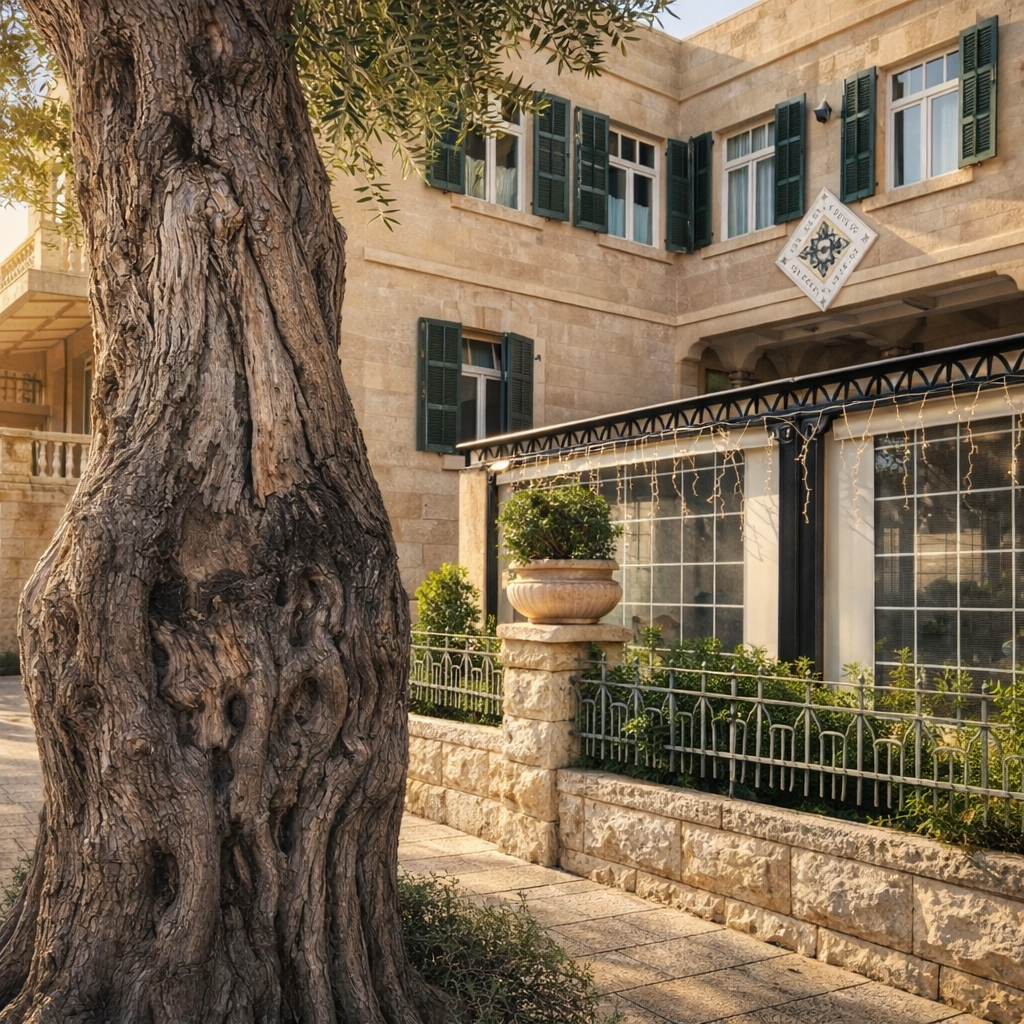 Junto al edificio se plantaron las primeras palmeras washingtonias, altas y visibles desde lejos, que funcionaban como un punto de referencia para quienes subían hacia el Carmelo. Los archivos del Instituto Schumacher en Haifa, dedicado a investigar la historia urbana, describen con detalle la vida cotidiana de la colonia alemana en el cambio de siglo. Las hermanas Eppinger aparecen allí como cocineras excepcionales: el restaurante del hotel era muy conocido y especialmente frecuentado por oficiales británicos, hasta la disolución de la comunidad alemana durante la Segunda Guerra Mundial. En esas mismas salas se reunió durante un tiempo la Comisión Peel, el organismo británico que debatía el futuro reparto de Palestina.