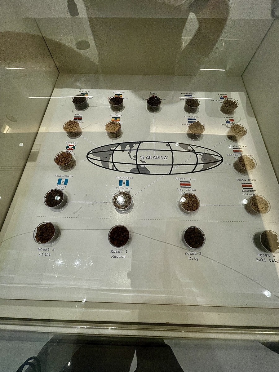 Бренд был основан в Киото в 2014 году и с самого начала строился как международный, но без локальных адаптаций. Во всех точках — от Японии до Ближнего Востока — используется одинаковый визуальный язык, одинаковое оборудование и один подход к меню. В % Arabica нет длинного списка напитков: эспрессо, американо, латте и несколько сезонных вариаций. Выбор намеренно ограничен, чтобы не отвлекать от вкуса.