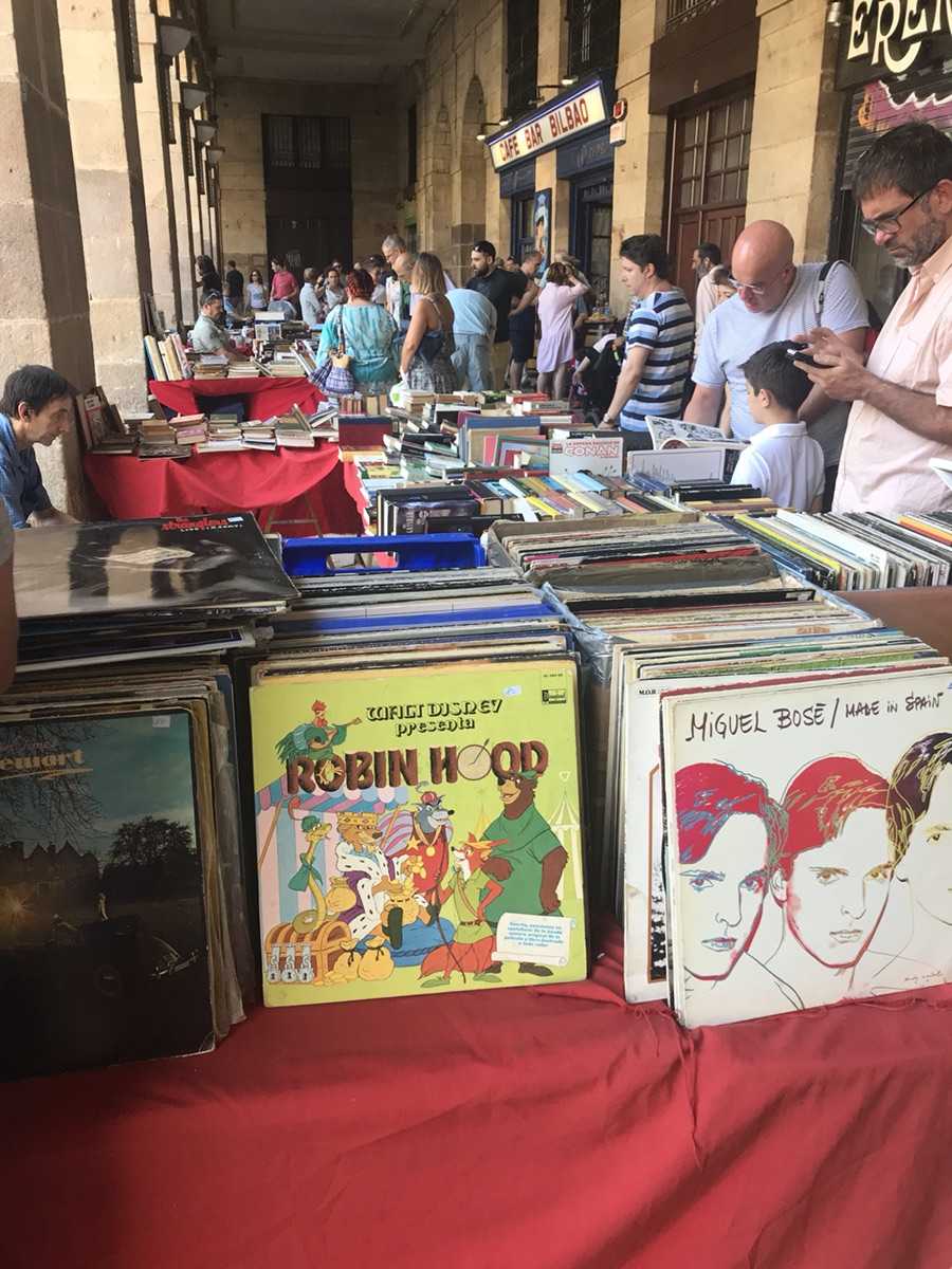 Vinyl records at the Sunday market on Plaza Nueva are more than music — they’re a living piece of the city’s memory. Back when Bilbao was booming as an industrial powerhouse, almost every home had a record player, and the warm crackle of vinyl meant comfort, modernity, and a small window to the wider world. Records were sold in music shops under these very arcades, and in the same buildings where collectors now flip through covers they first saw as teenagers.
