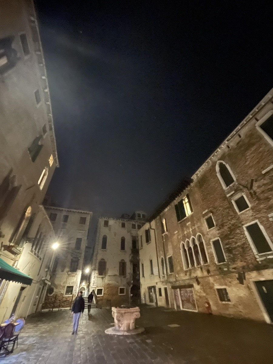 Путь ведет нас к площади Сан-Марко, которая в сезон фестиваля превращается в мистический театр. Но мы уходим от толпы вглубь, к району Сан-Лука. Здесь, у театра Гольдони и здания H&M (Palazzo Nervi-Scattolin), мы ловим тот самый контраст, который так ценил Гёте: ренессансная резьба акантом на фасадах встречается с модернизмом XX века. Мы идем по следам «немецкого купца Мёллера» (инкогнито великого поэта) через Калле дель Лово — «Волчью улицу», где в створе домов вдруг вспыхивает шпиль колокольни.