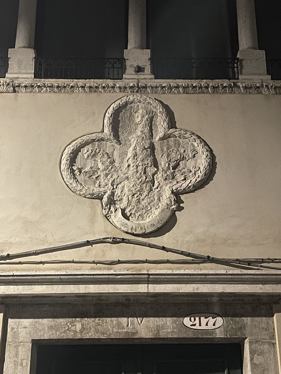 На Кампо Сан-Сальвадор мы замечаем шрам истории — австрийское пушечное ядро, застрявшее в стене церкви, — и любуемся кованым драконом, охраняющим старинную лавку зонтиков. Это город деталей, где точность важнее масштаба.