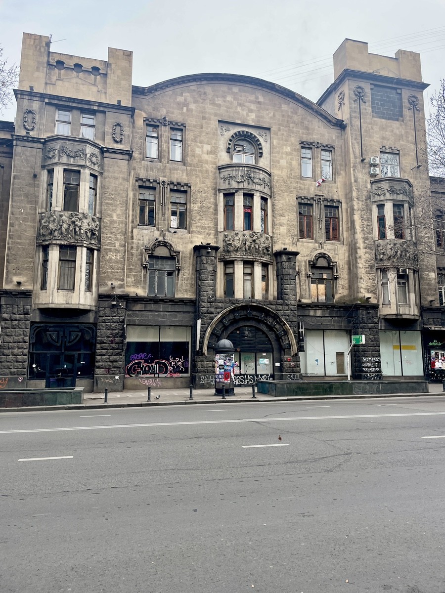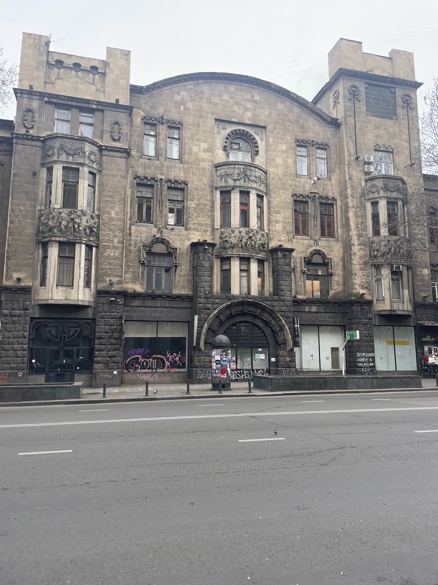 Дом Мелика-Азарянца — выдающийся архитектурный памятник Тбилиси, расположенный на проспекте Шота Руставели. Построенный в 1912–1915 годах по проекту петербургского архитектора Николая Оболонского, он был заказан известным предпринимателем и меценатом Александром Мелик-Азарянцем. Здание выделяется своей эклектичной архитектурой с элементами модерна и готики, украшено барельефами, высокими окнами и готическими шпилями. Интересно, что фасад дома декорирован траурными венками и окнами в форме слёз, что, по одной из версий, связано с личной трагедией Мелик-Азарянца — смертью его дочери Тагуи в возрасте 22 лет. После национализации в советский период здание использовалось под различные учреждения. Сегодня в нём размещаются магазины, кафе и Тбилисский театр пантомимы. Дом Мелика-Азарянца остаётся символом исторического центра Тбилиси и привлекает внимание как местных жителей, так и туристов.