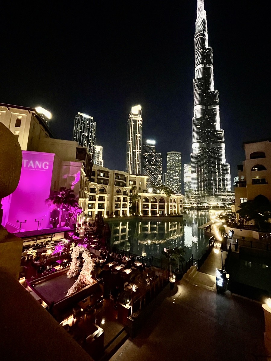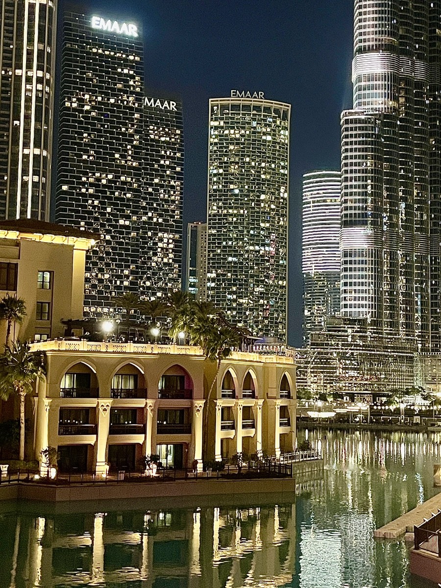 Если разобрать место через микропроцесс, ключевой элемент — линия света вдоль воды. Низкие фонари, ступени, террасы ресторанов и отражения окон работают вместе. Свет не направлен вверх, он скользит по поверхности, удваивается в отражениях и собирает пространство в горизонталь. Именно поэтому Burj Khalifa здесь воспринимается иначе: не как одиночная вертикаль, а как часть ансамбля, читаемая через отражение.