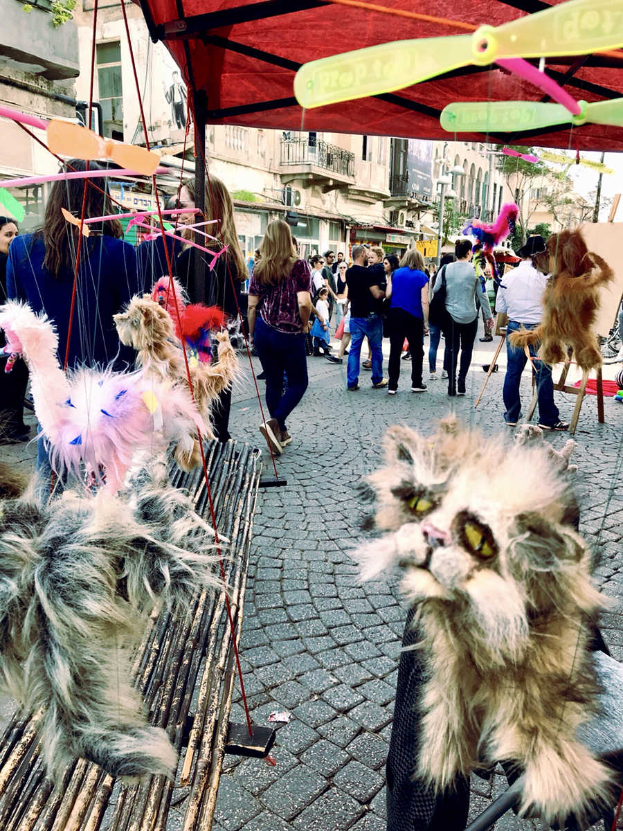 This stop is on the cross of Nahalat Benyamin St. and Rambam St. There’s a lady who makes marionettes using home-brought materials. These toys look quite impressive. They are clearly unrealistic, but it is possible to sense the genius of the artist behind these pieces.