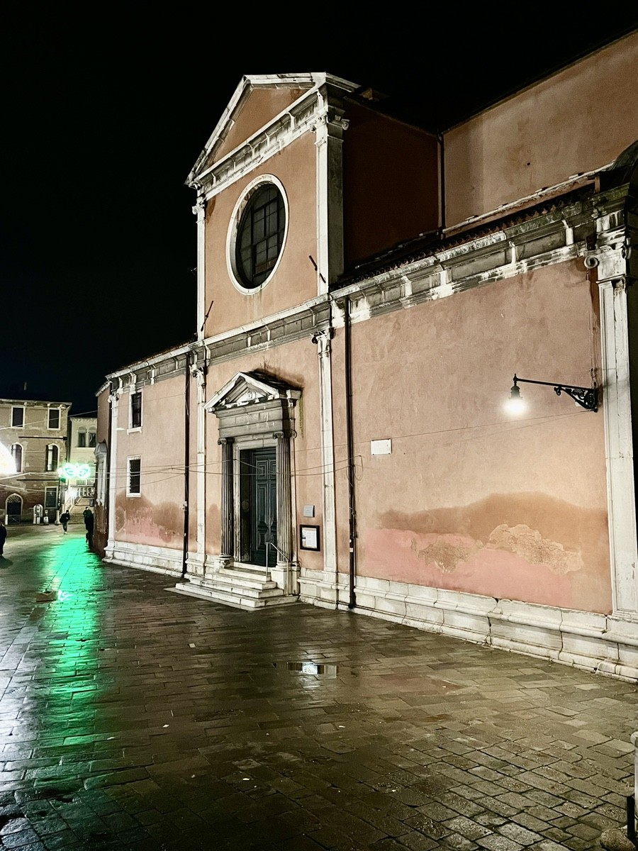 Путь ведет нас к площади Сан-Марко, которая в сезон фестиваля превращается в мистический театр. Но мы уходим от толпы вглубь, к району Сан-Лука. Здесь, у театра Гольдони и здания H&M (Palazzo Nervi-Scattolin), мы ловим тот самый контраст, который так ценил Гёте: ренессансная резьба акантом на фасадах встречается с модернизмом XX века. Мы идем по следам «немецкого купца Мёллера» (инкогнито великого поэта) через Калле дель Лово — «Волчью улицу», где в створе домов вдруг вспыхивает шпиль колокольни.
