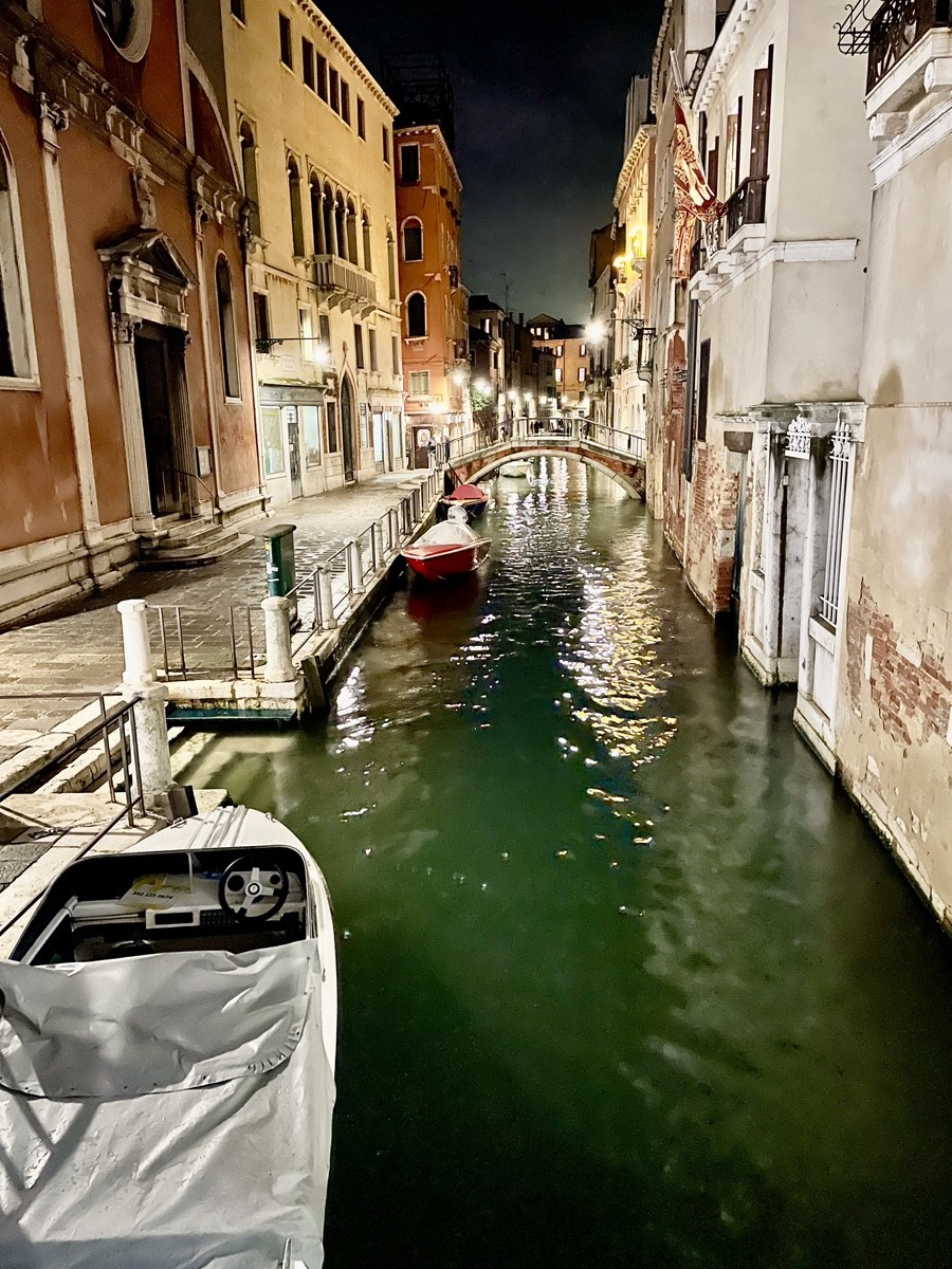 Мы движемся вдоль Гранд-канала к рыбному рынку Риальто (Pescaria). Зимой, в свете фонарей, его неоготические арки кажутся декорациями к таинственной пьесе. Это чрево Венеции, где веками шумят торговцы и где «язык камня» встречается с повседневной суетой. Пройдя через легендарный мост Риальто, мы попадаем в самое сердце коммерции, где банковские палаццо соседствуют с крошечными лавками.