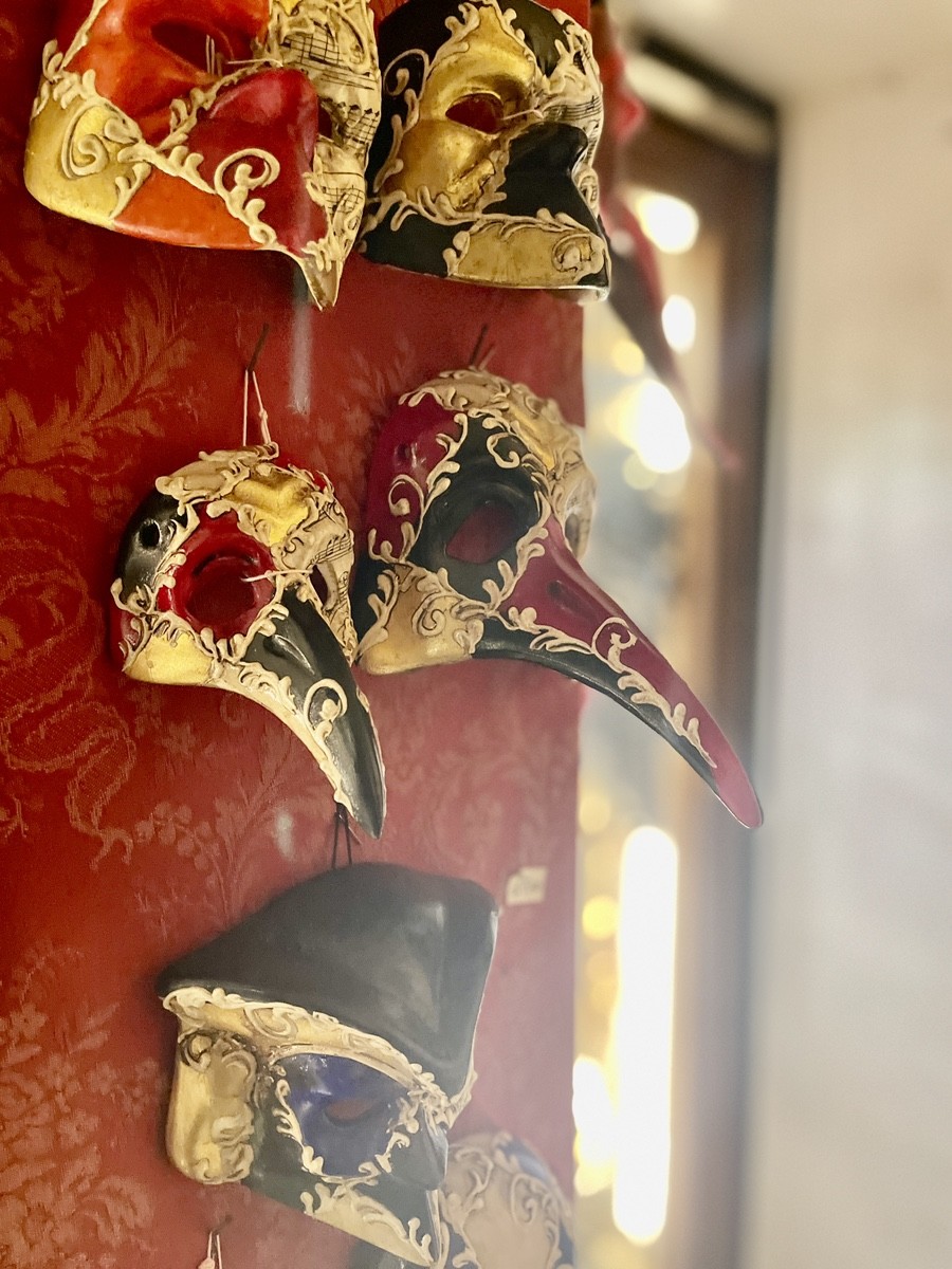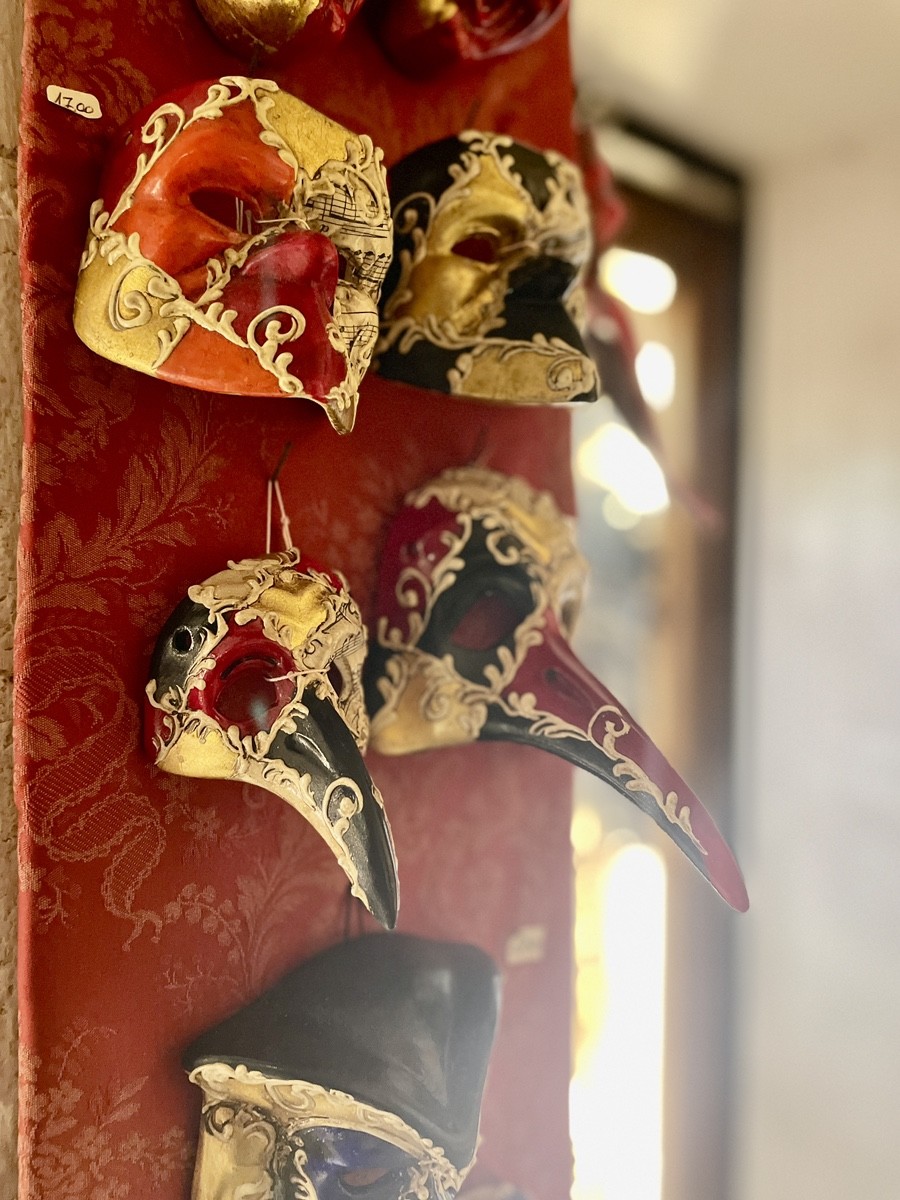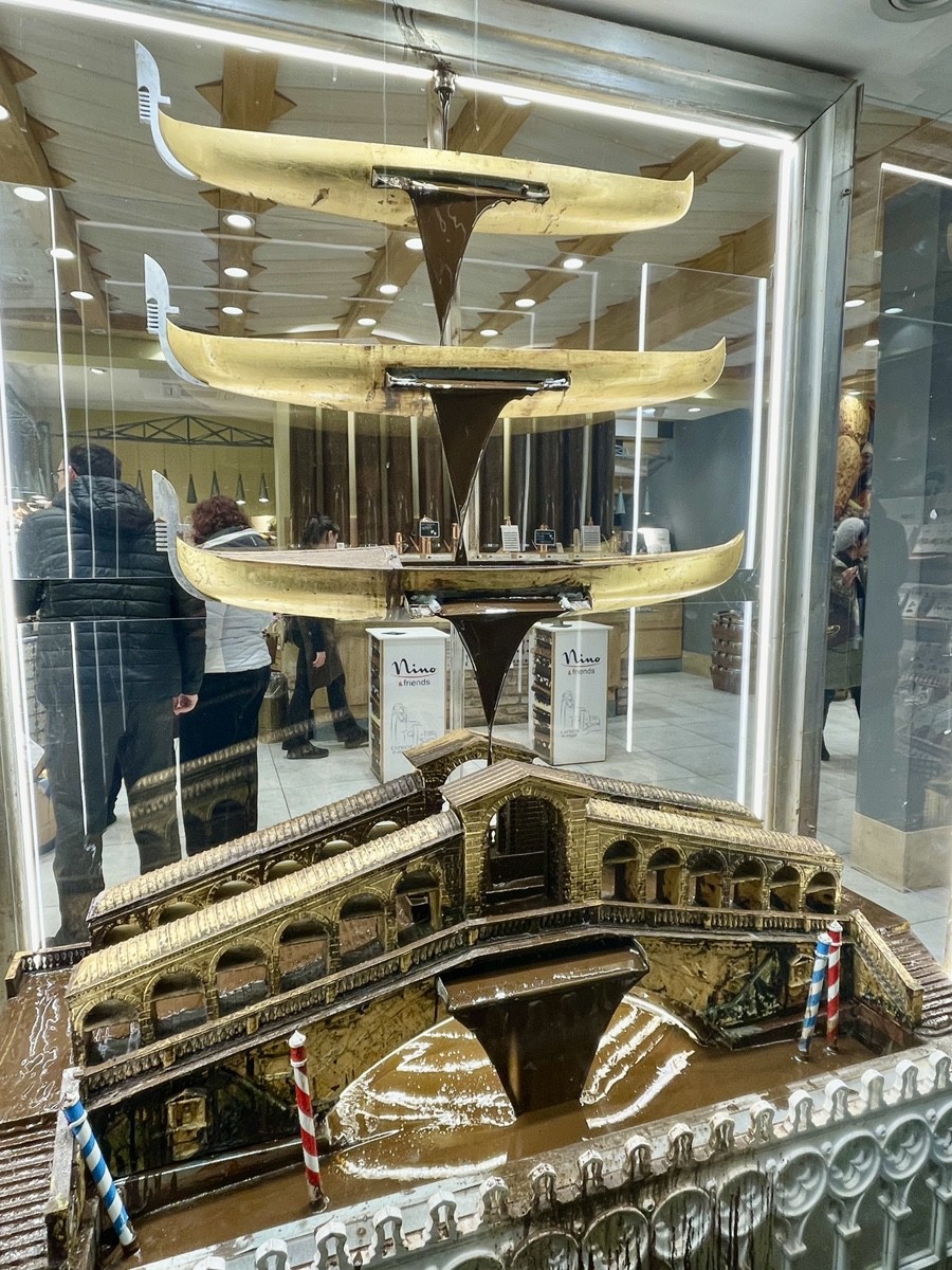 На Кампо Сан-Сальвадор мы замечаем шрам истории — австрийское пушечное ядро, застрявшее в стене церкви, — и любуемся кованым драконом, охраняющим старинную лавку зонтиков. Это город деталей, где точность важнее масштаба.