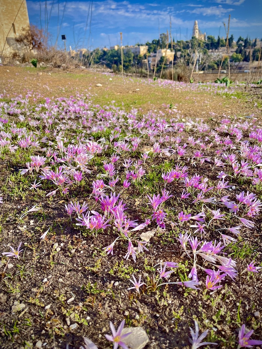Иерусалим осенью – это город, наполненный светом и свежестью. Мы начнем прогулку с **горки Танаха**, где среди камней расцветает нежный безвременник. Здесь когда-то планировали построить музей Библии, а сегодня это место привлекает видами на Старый город, гору Сион с церковью Успения и Елеонскую гору с её колокольнями.