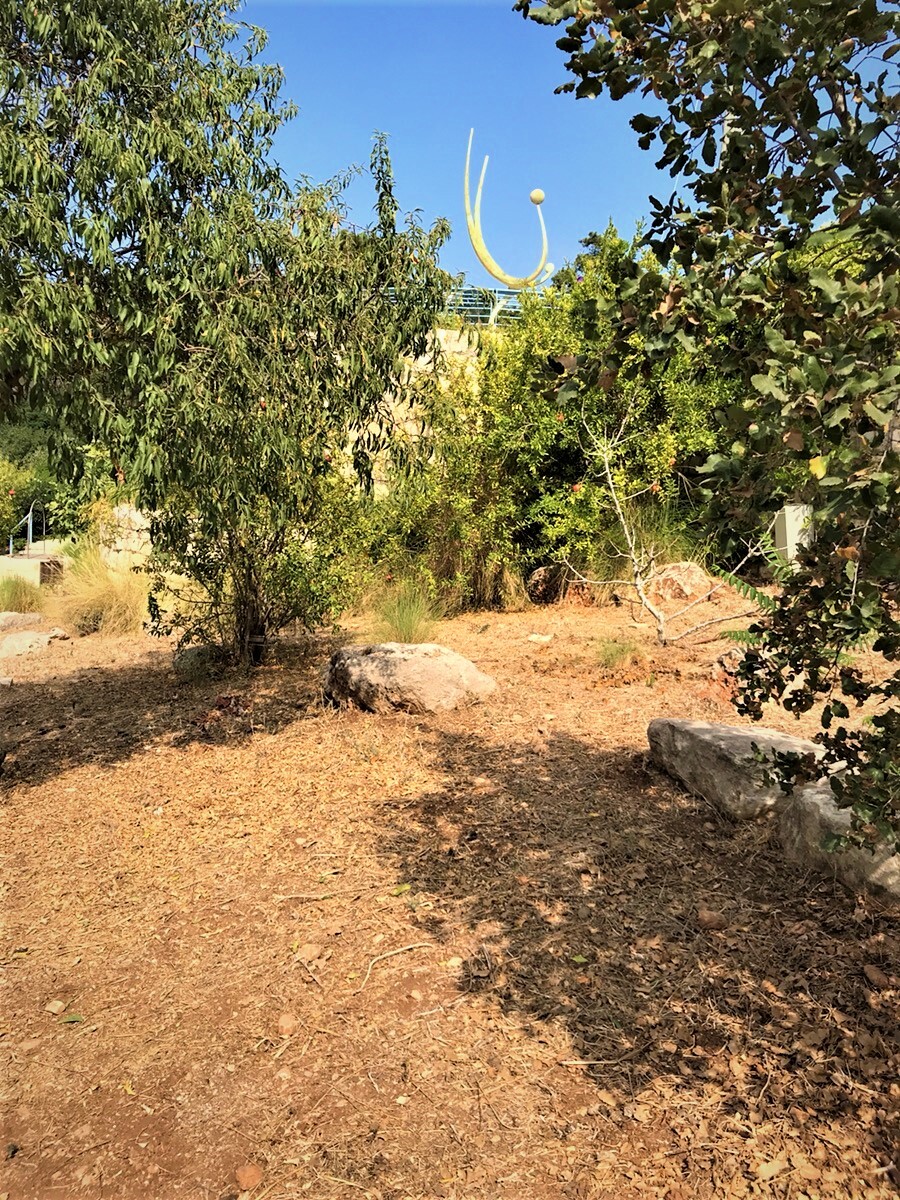 The park in Ein Hod, along with many other areas in the village, is adorned with sculptures and installations that tell the story of its ruin and subsequent revival. Notable works include a sealed well and sculptures of musicians and dancers, symbolizing the village's past and present.