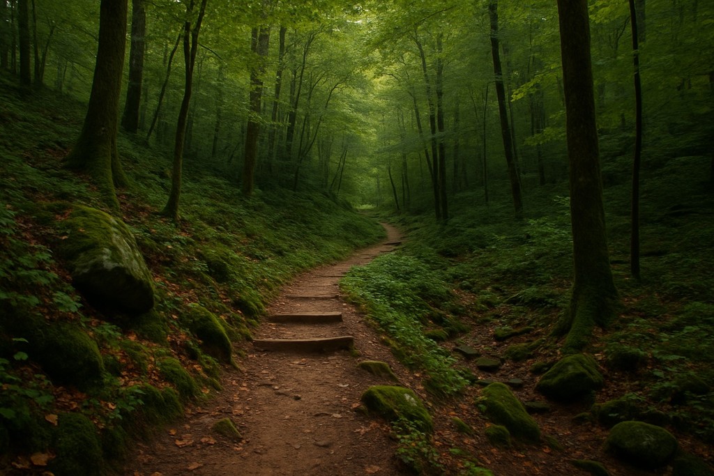 • חזרה בשביל דרך מדרגות טבעיות בתוך היער
