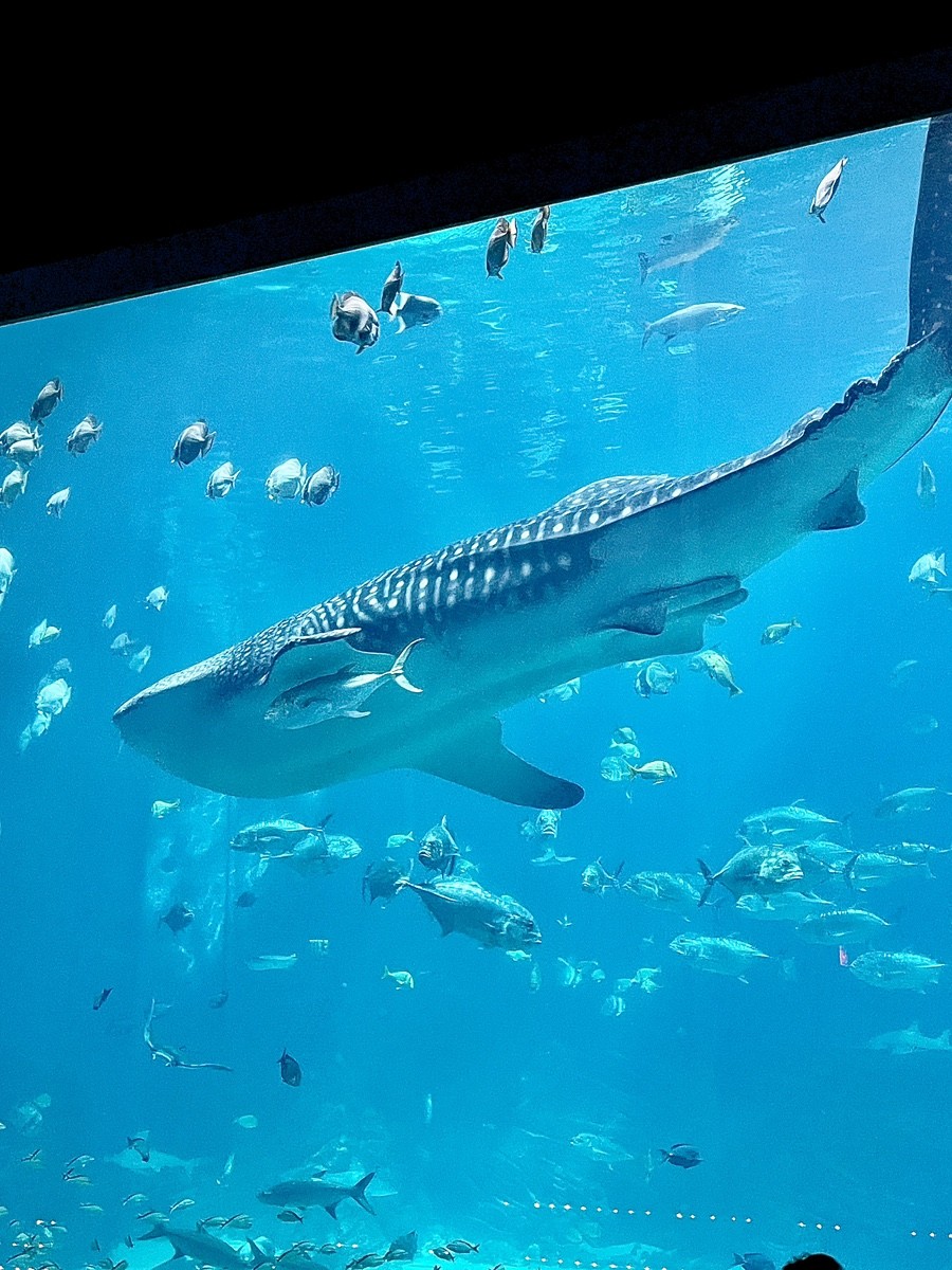 For comparison: – Georgia Aquarium (Atlanta, USA) — window ~18 m wide, 7 m tall, acrylic thickness ~60 cm; the only aquarium in the U.S. with whale sharks. – Churaumi Aquarium (Okinawa, Japan) — “Kuroshio Sea” window ~22.5 m wide, 8.5 m tall, acrylic thickness ~60 cm; home to whale sharks in Asia.