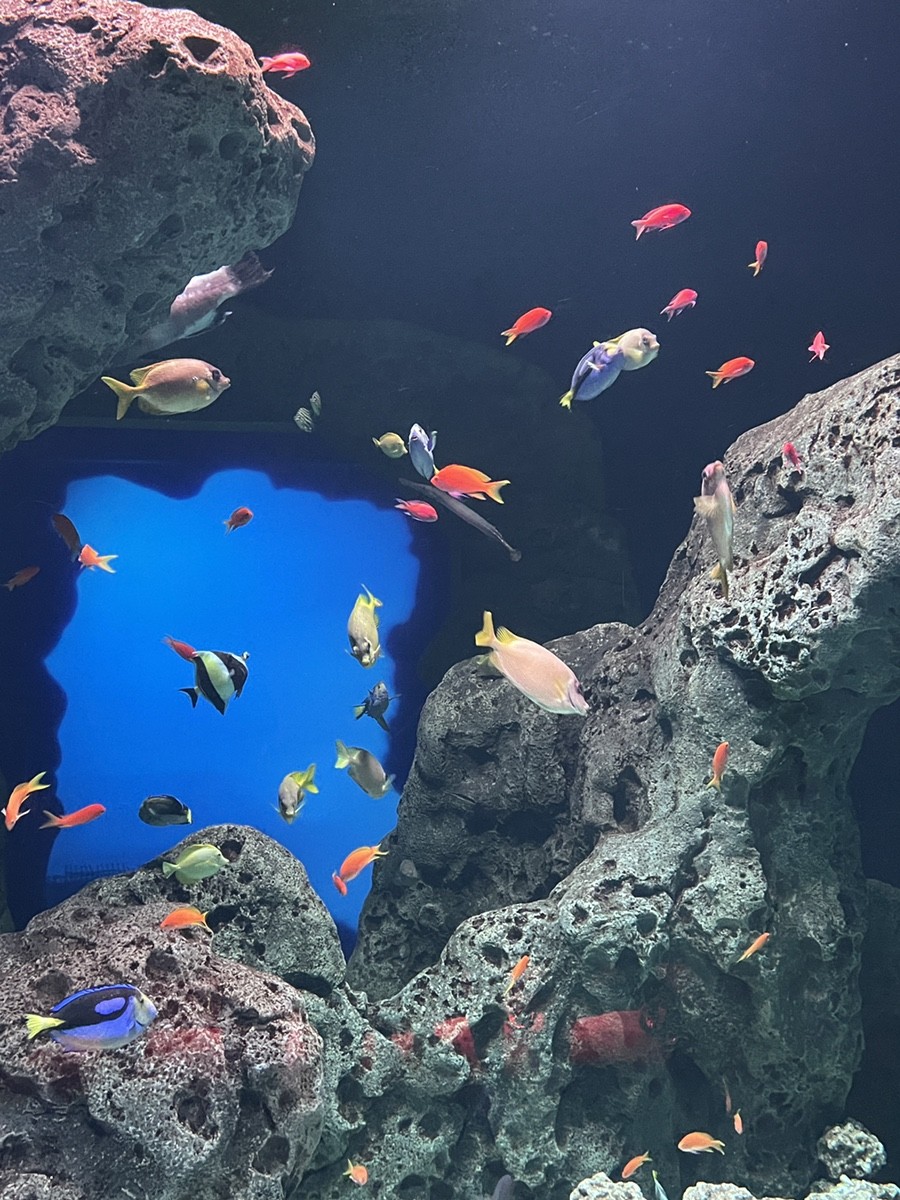 This photo captures a classic coral reef scene, recreated inside the Georgia Aquarium. Each fish is like a living brushstroke, and together they paint the vibrant ecosystem of the tropics.