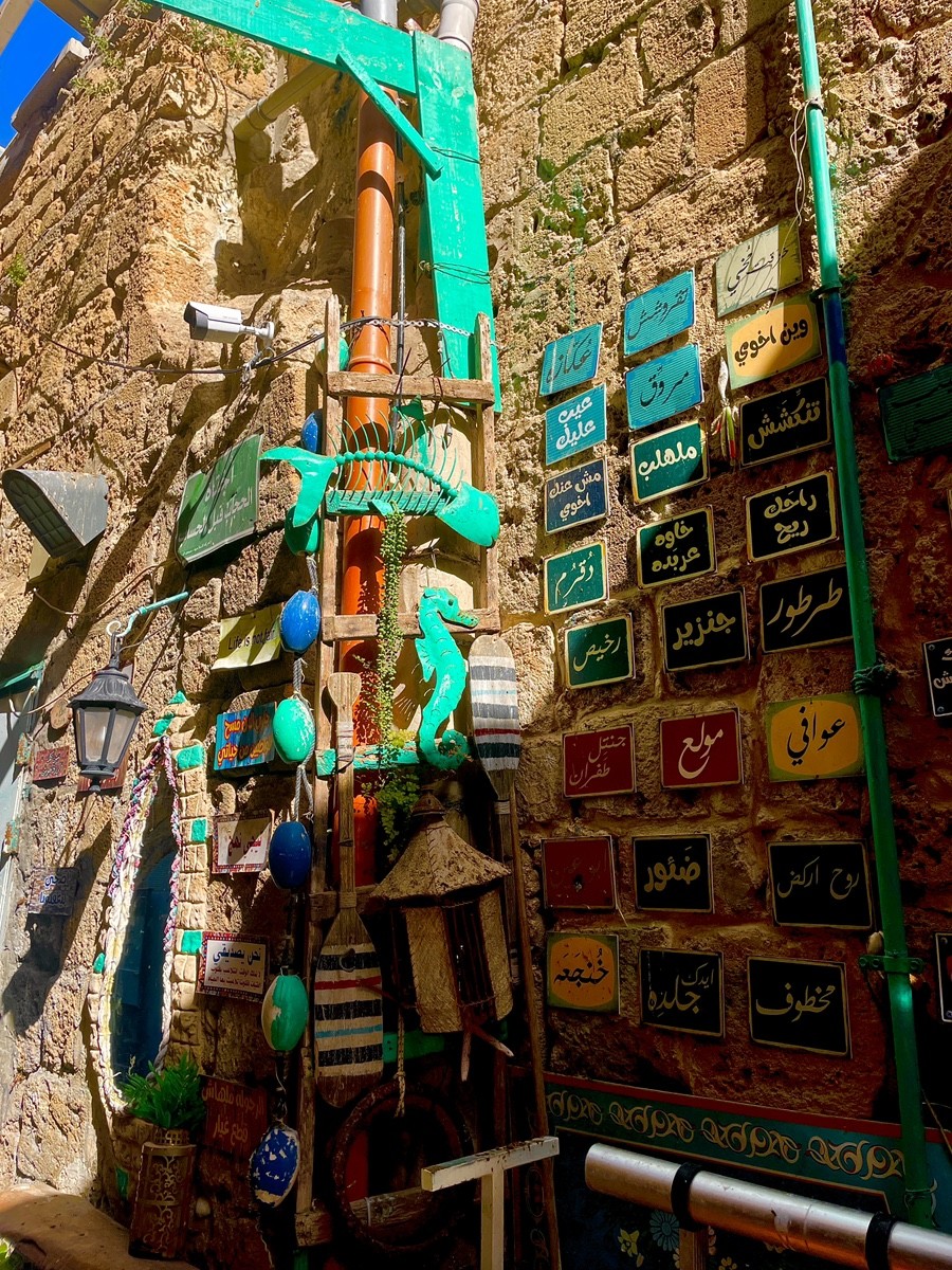 Эта улица — как раз такая. Она возникла на руинах кварталов крестоносцев, которые после разрушений больше никогда не были восстановлены полностью. Сегодня городские власти Акко нашли способ вдохнуть сюда жизнь: среди древних камней появились арт-объекты, цветы, зеркала, фрагменты керамики и символы моря — якоря, штурвалы, зелень, словно прорастающая сквозь время.