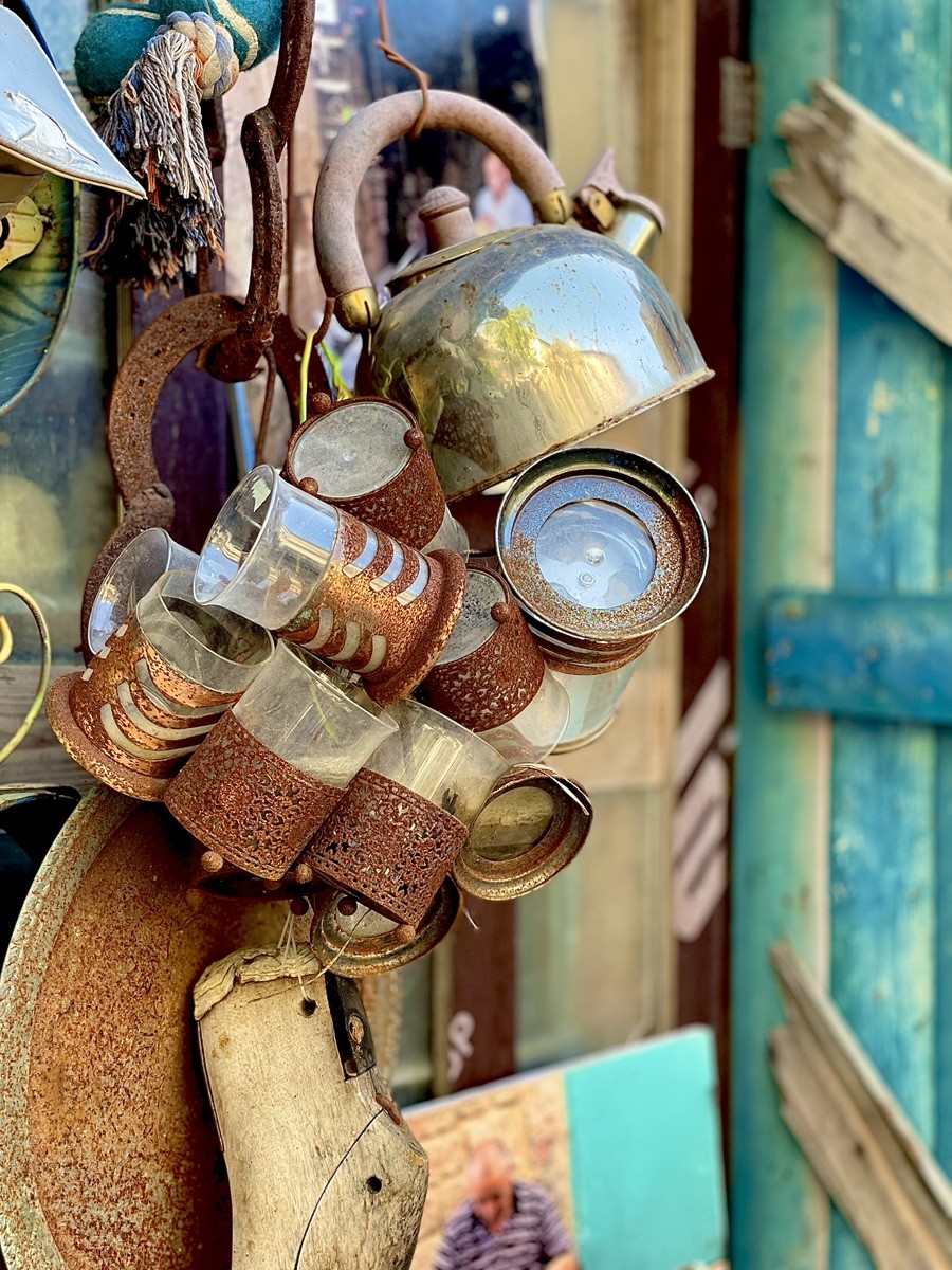 Его «Coffee Art» — не кафе, а живой коллаж из предметов, красок и воспоминаний. На стенах — чайники, ржавые кружки, башмаки, фотографии старого Акко, парусники и детские игрушки. За окном — расписанные ставни и морская соль, осевшая на стекле. Внутри — тёплый свет, запах кофе и старой меди. Здесь каждая вещь рассказывает о жизни у моря: о рыбаках, о кораблях, о людях, которые пьют чай и говорят о том, что море меняется, а город — нет.