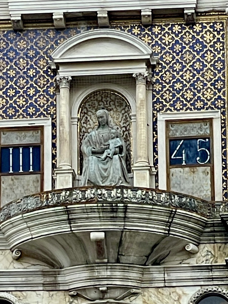 Арка с Мадонной это один из самых узнаваемых проходов в районе Кастелло. В тимпане арки находится великолепный барельеф XV века работы Джованни Буона (отца того самого Бартоломео Буона, который строил Дворец дожей). На нем изображена Мадонна с Младенцем в окружении святых. В Венеции такие арки (sotoportego) часто служили границей между миром города и территорией монастыря. Проходя под ней, человек как бы попадал под защиту святых. Сверху над Мадонной видна фигура Бога-Отца, венчающая композицию.