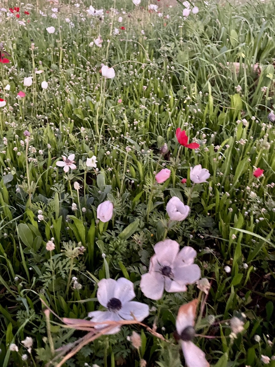 Это классический «цветок-солнце» с ярко-желтой выпуклой сердцевиной и белоснежными лепестками. Листья у пупавки ажурные, мелко рассеченные, что отличает её от многих других похожих цветов. Февраль-март — пик её цветения. Она покрывает поля густым белым ковром, особенно в таких районах, как Нахаль Раба, где почва сохраняет весеннюю влагу.