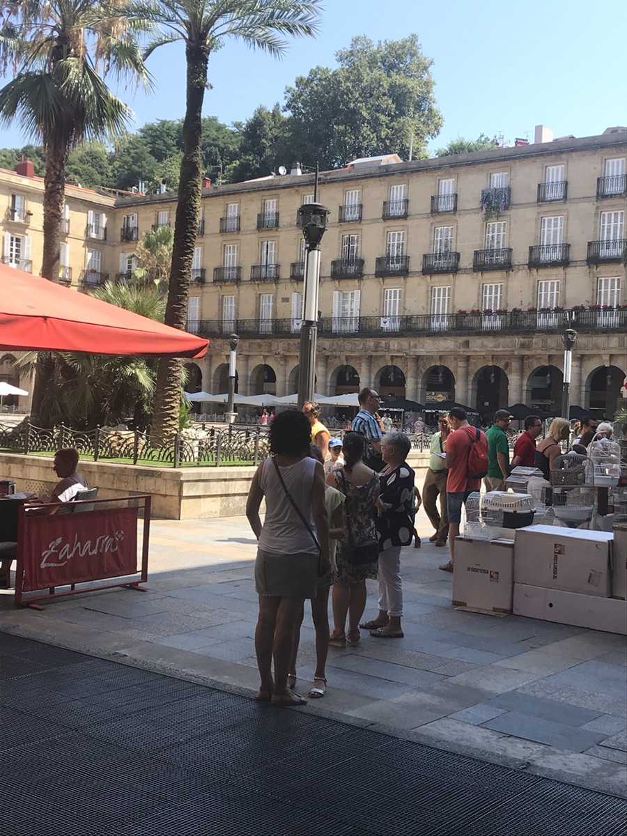 The Basques adopted the architecture but not the obedience built into it. On this same square you hear canaries, but also the smell of roasted peppers and anchovies. Every evening people gather with a glass of wine and a plate of pintxos—food that is proudly, stubbornly their own. Spain brought the form; the Basques filled it with their voice. And if the canary sings behind its bars, the Basque spirit sings in freedom—through its language, traditions, flavors, and the rhythm of this land.