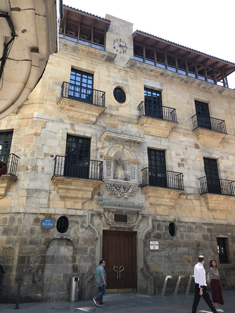 Calle de la Pelota is one of those names that carries more history than the street itself seems willing to reveal at first glance. The plaque here tells the story. The word pelota means “ball,” and in Basque the street is Pilota kalea — a direct nod to the traditional Basque sport pelota, the ancestor of both squash and tennis.